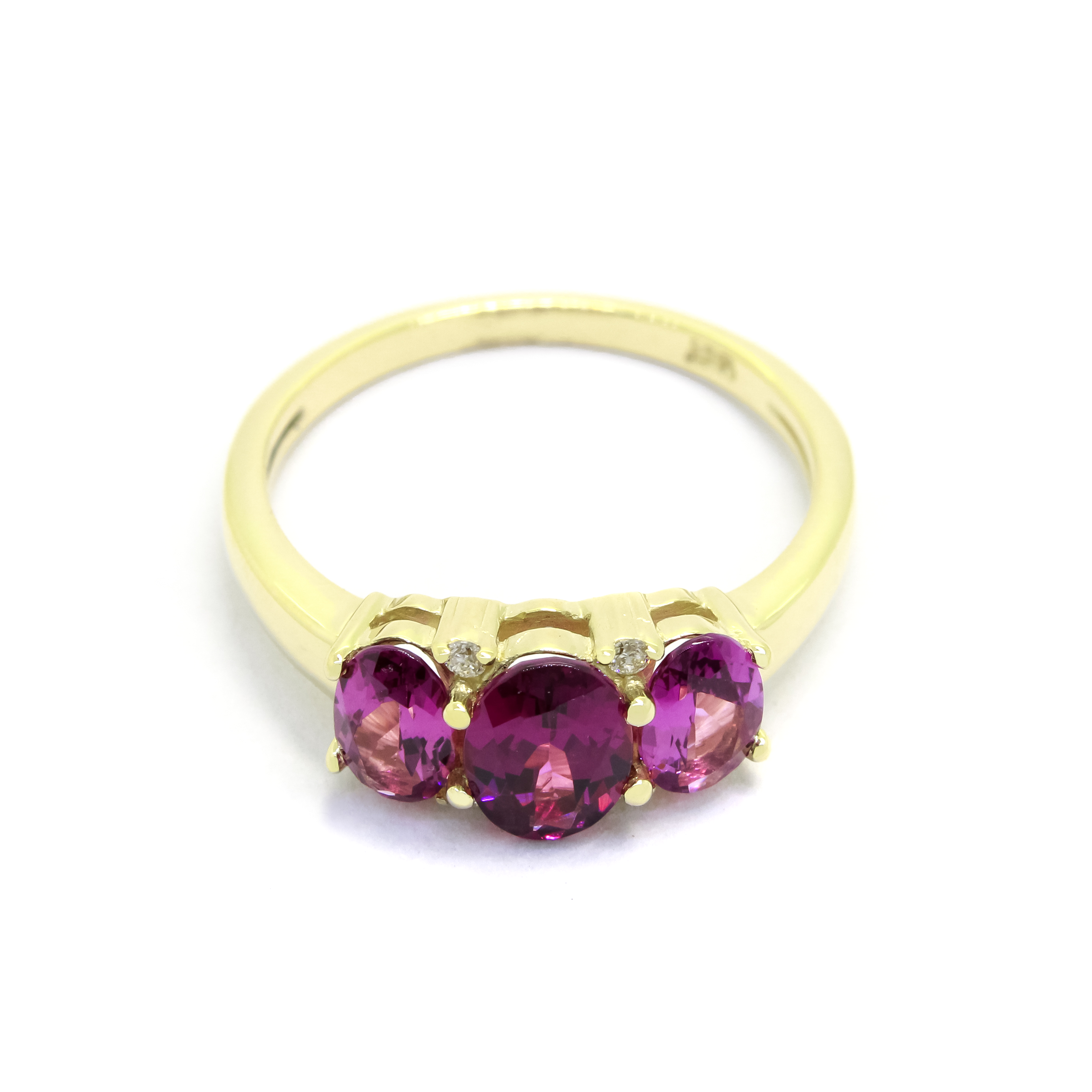 A bold and elegant golden ring with a stunning combination of grape garnet and diamond detailing.