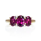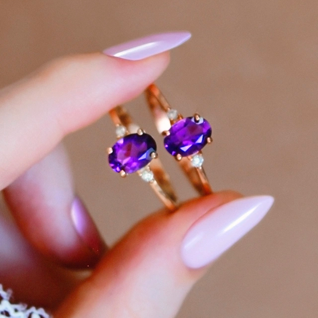 A bold and elegant golden ring with a stunning combination of grape garnet and diamond detailing.