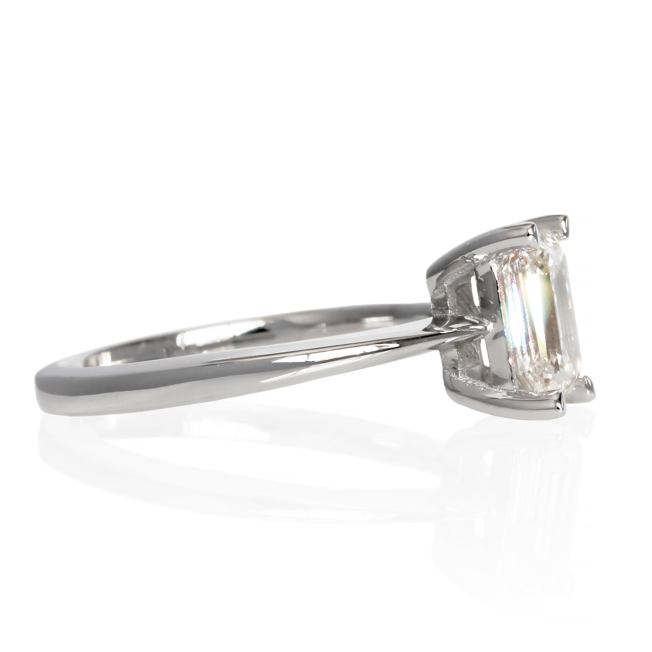 A classically gorgeous solitaire-style engagement ring, the Berengaria features a brilliant 1.09ct curated diamond centre stone and a band expertly designed in solid 9 karat white gold. The dazzling emerald-cut diamond comes certified and graded by the AGA-accredited Gem Lab as F/VS1, and a full valuation of the piece is included with the purchase.