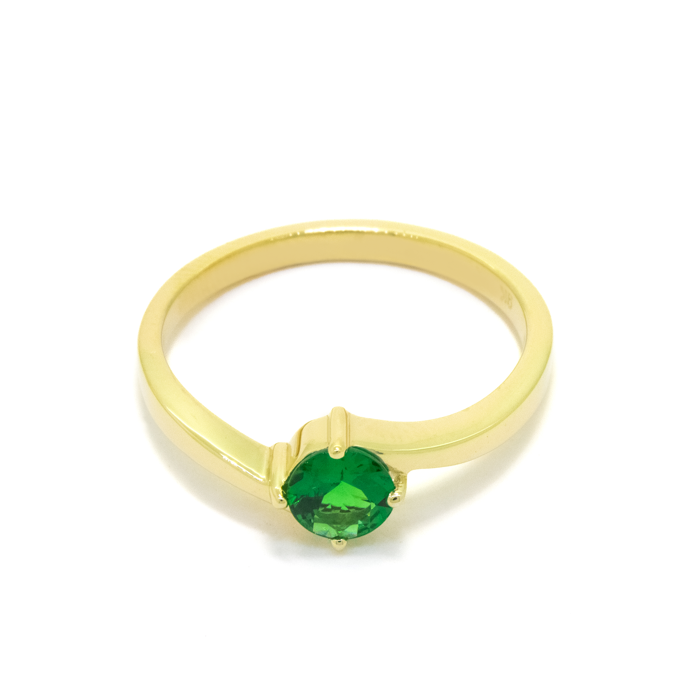A sleek and minimalistic tsavorite solitaire ring in 9k yellow gold, with a twist.