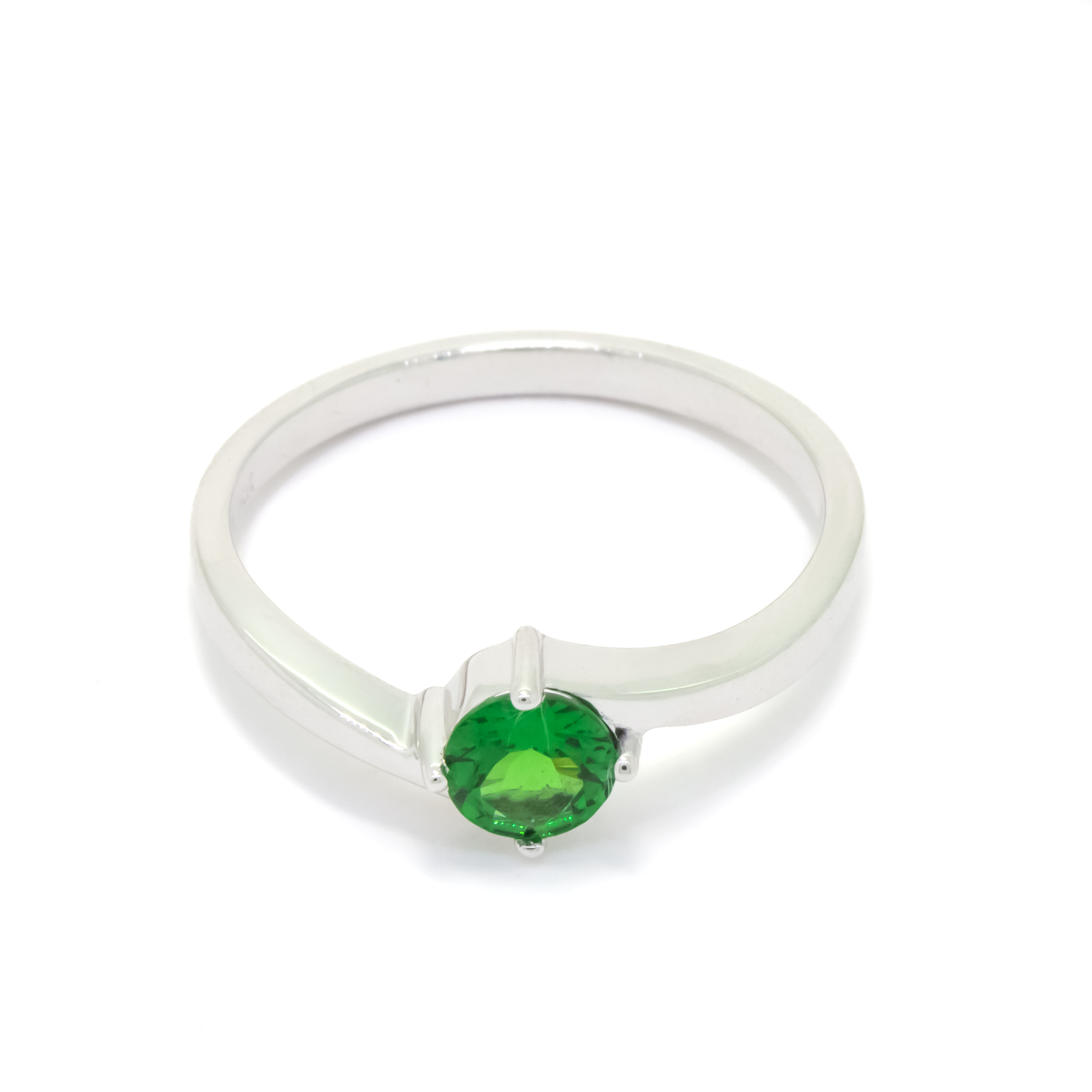 A sleek and minimalistic tsavorite solitaire ring in 9k white gold, with a twist.