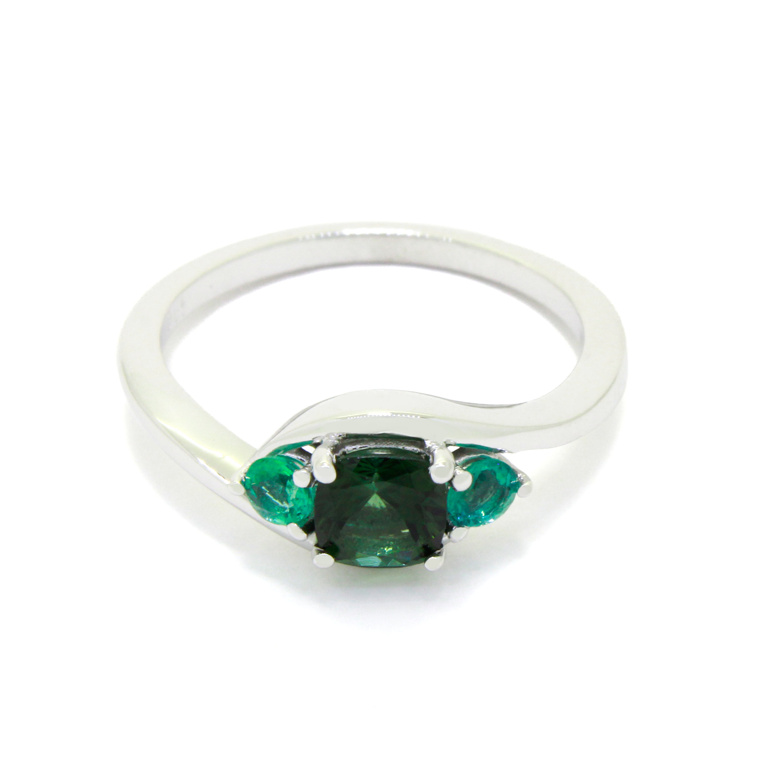 A mystical green tourmaline and emerald fantasy in solid 9k white gold.