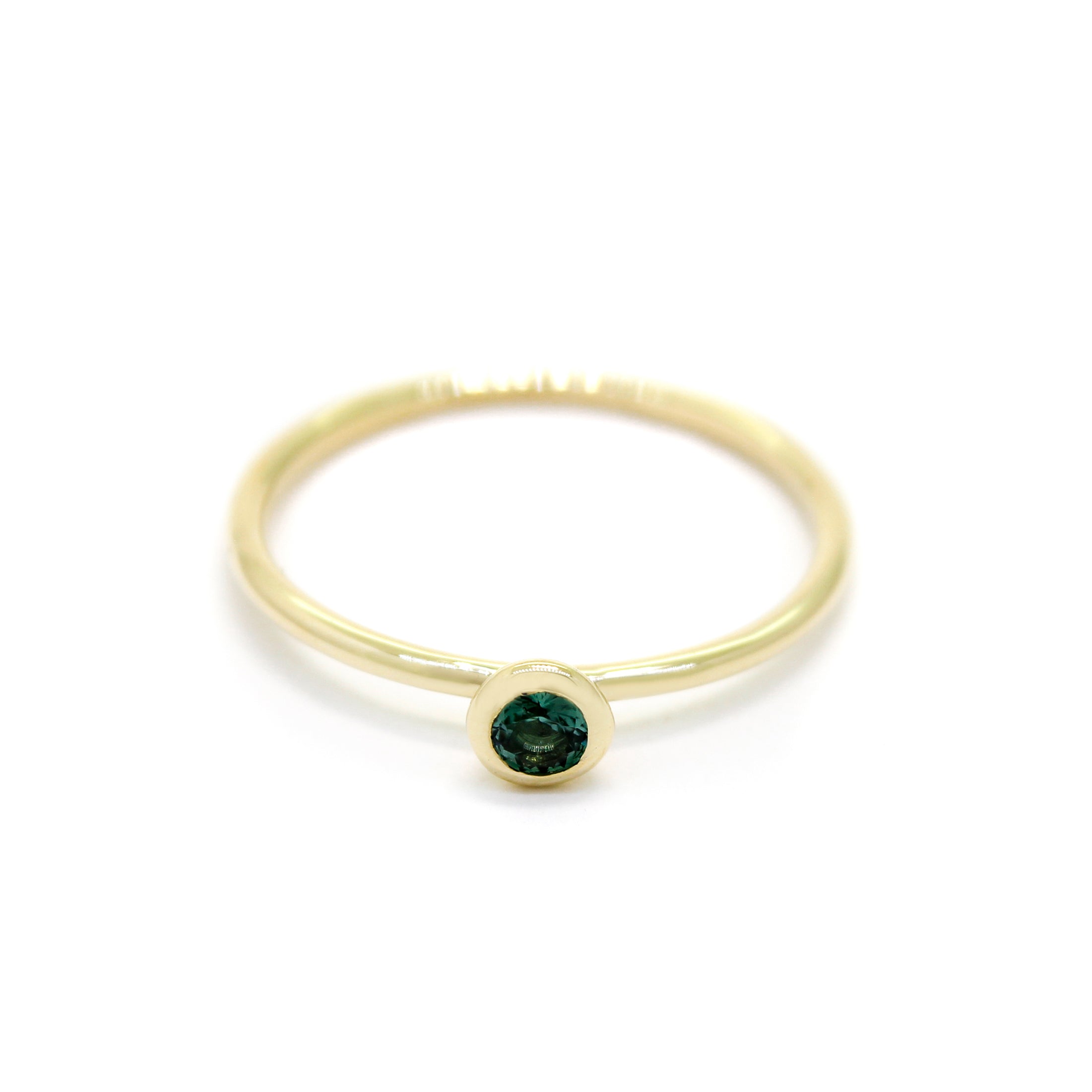 A dainty single-jewel stacking ring with a delicate yellow gold band and a 3mm round-shaped green tourmaline.