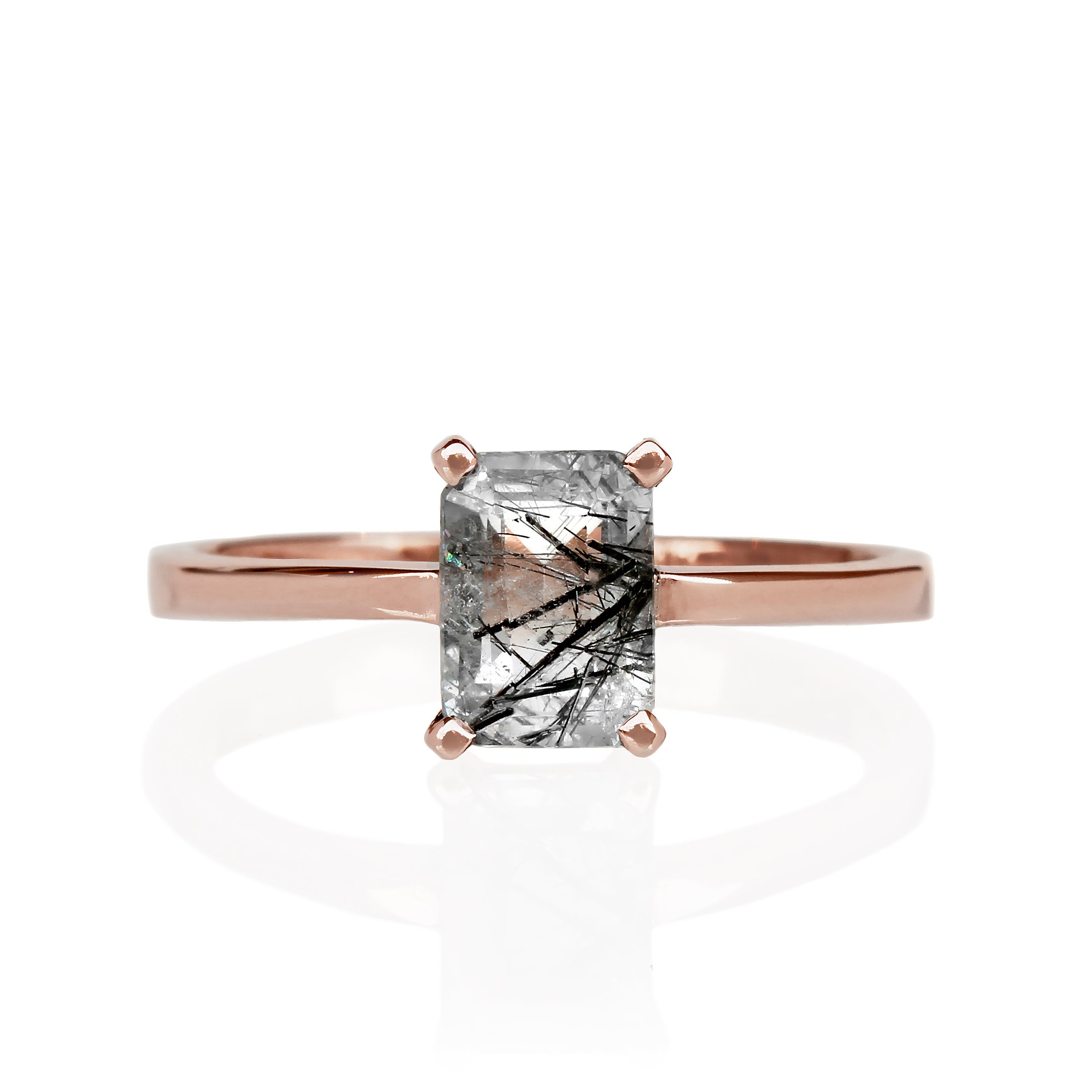 A solitaire ring appropriate for your everyday rotation, featuring a 7x5mm rectangular tourmalated quartz gemstone. Perfect for stacking or solo wear.