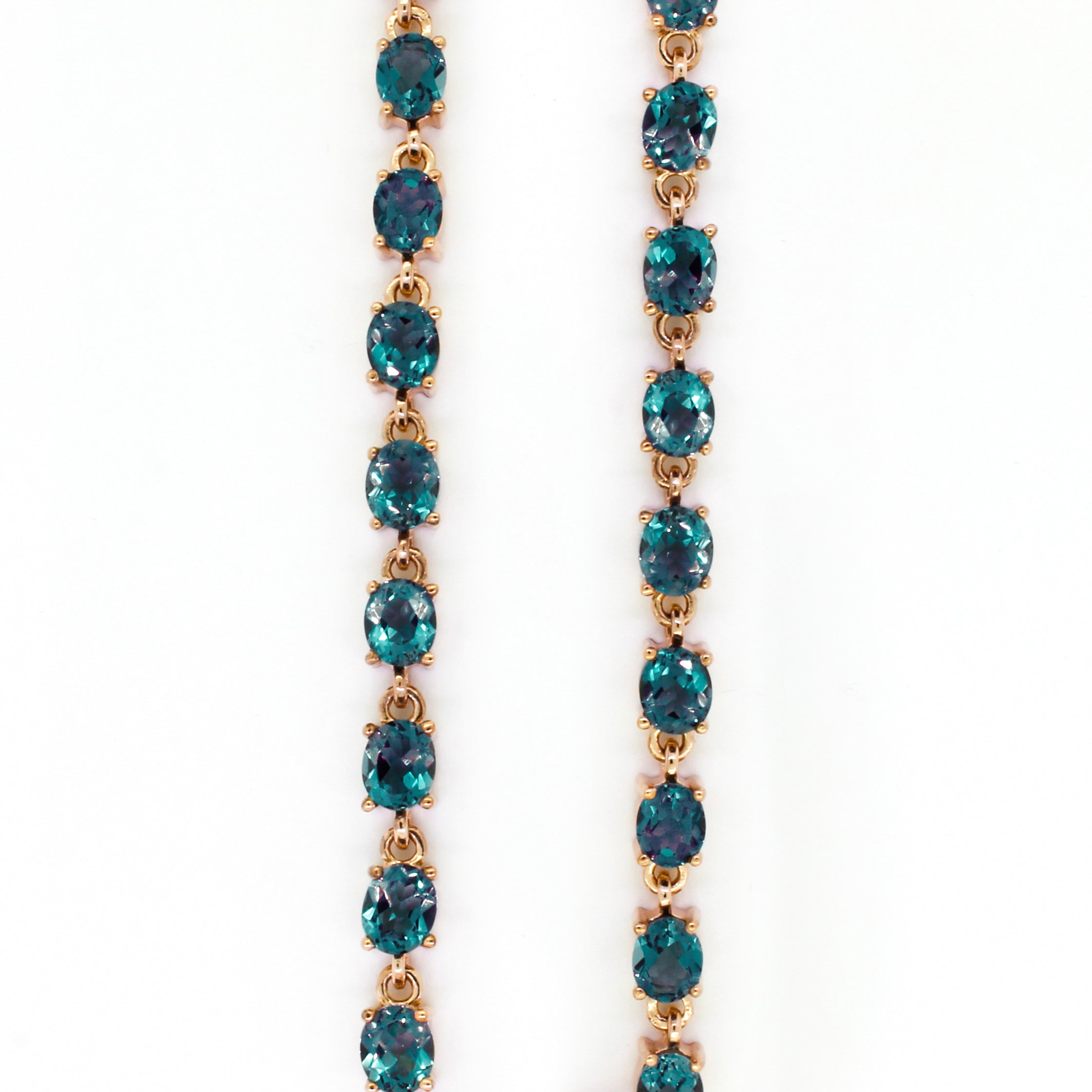 An elegant rose gold bracelet made up of 23 London Blue Topaz jewels, a fine addition to any collection.