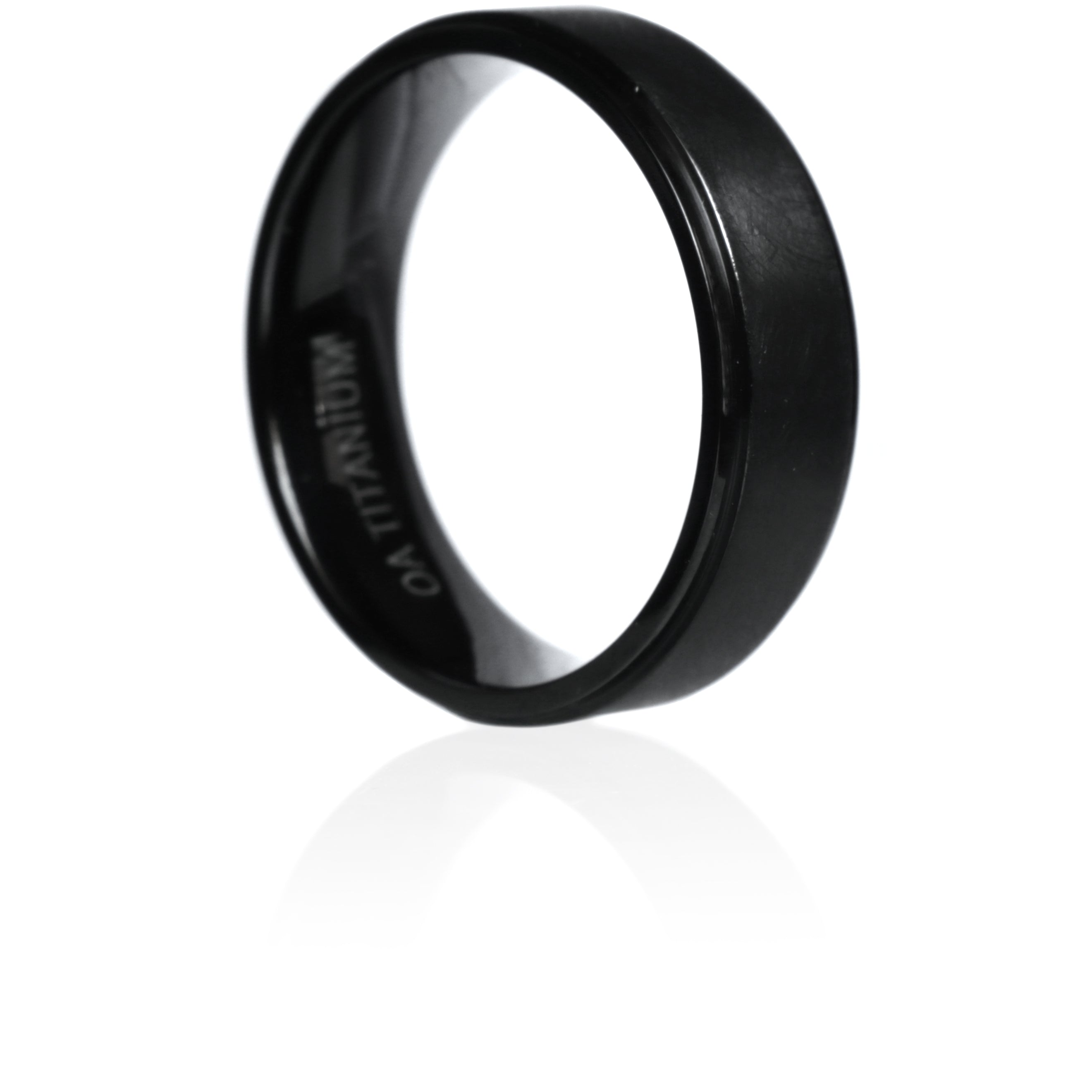 A dual-textured brushed & polished black titanium ring, the Thanatos rign perfectly encapsulates contemporary and stylish design. Perfect for a modern wedding band or a distinctive everyday ring.