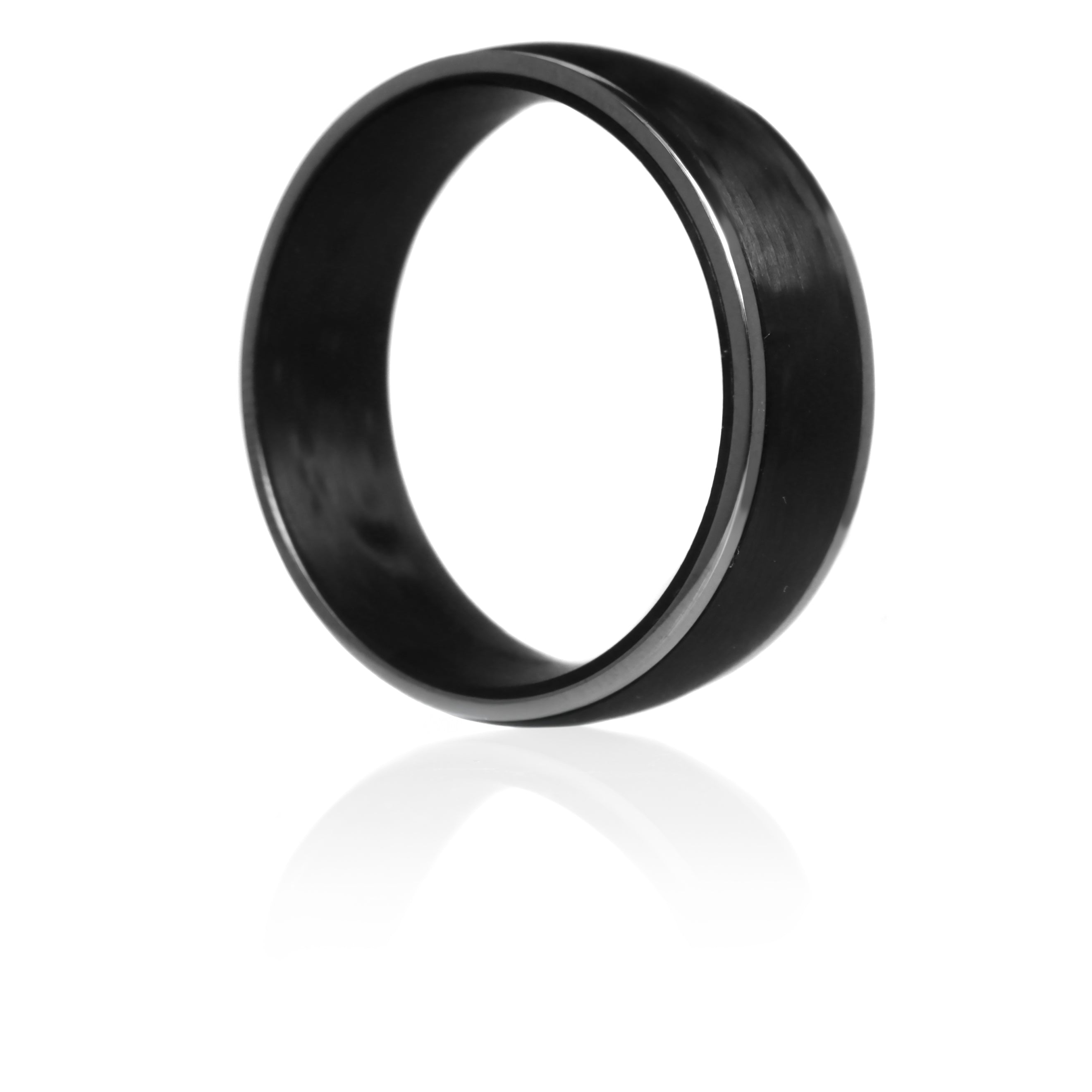 This bold and contemporary 8mm ring features a sleek black carbon fiber inlay framed by durable titanium edges. A modern statement for the modern man.