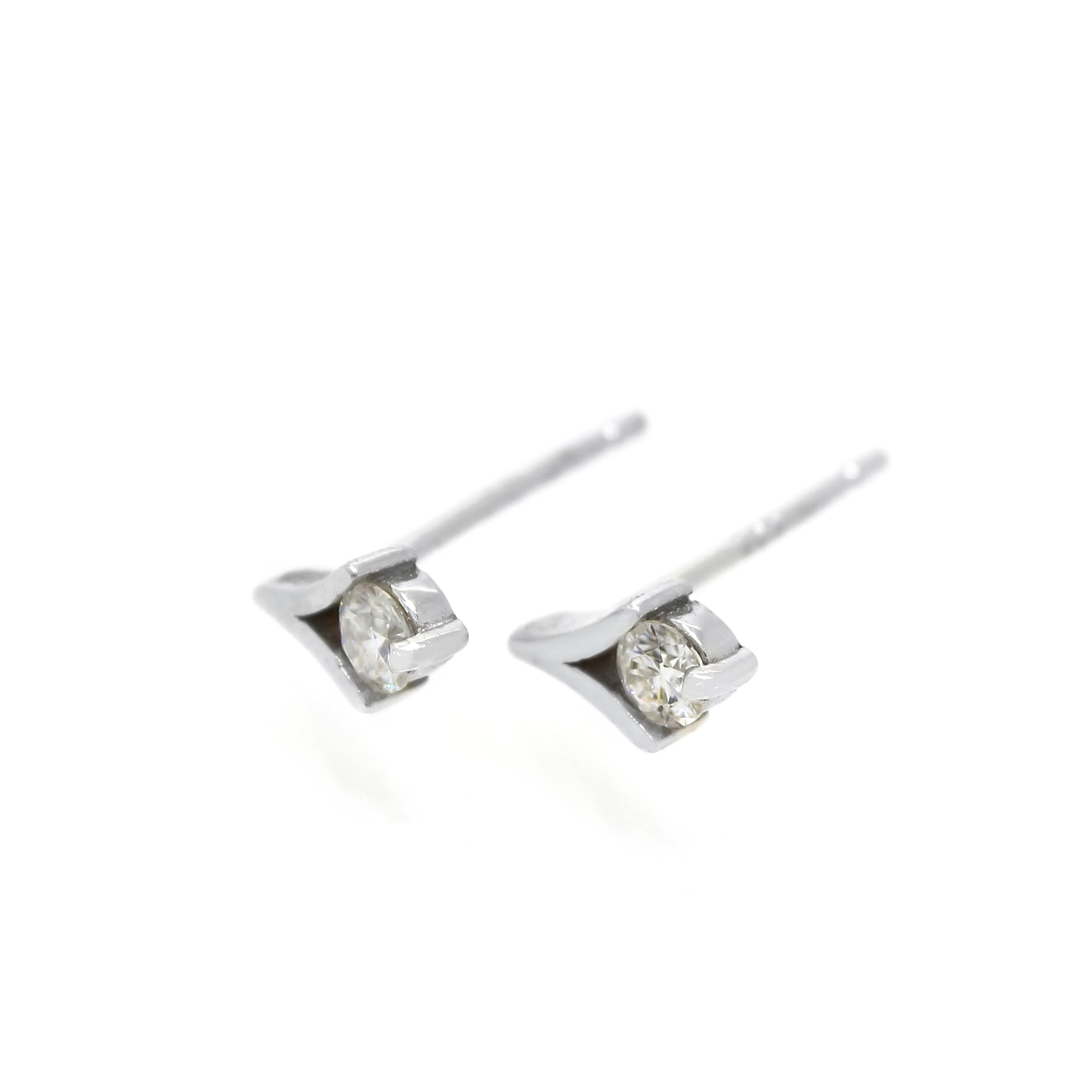 A delicate pair of moissanite earrings, appropriate for everyday wear.