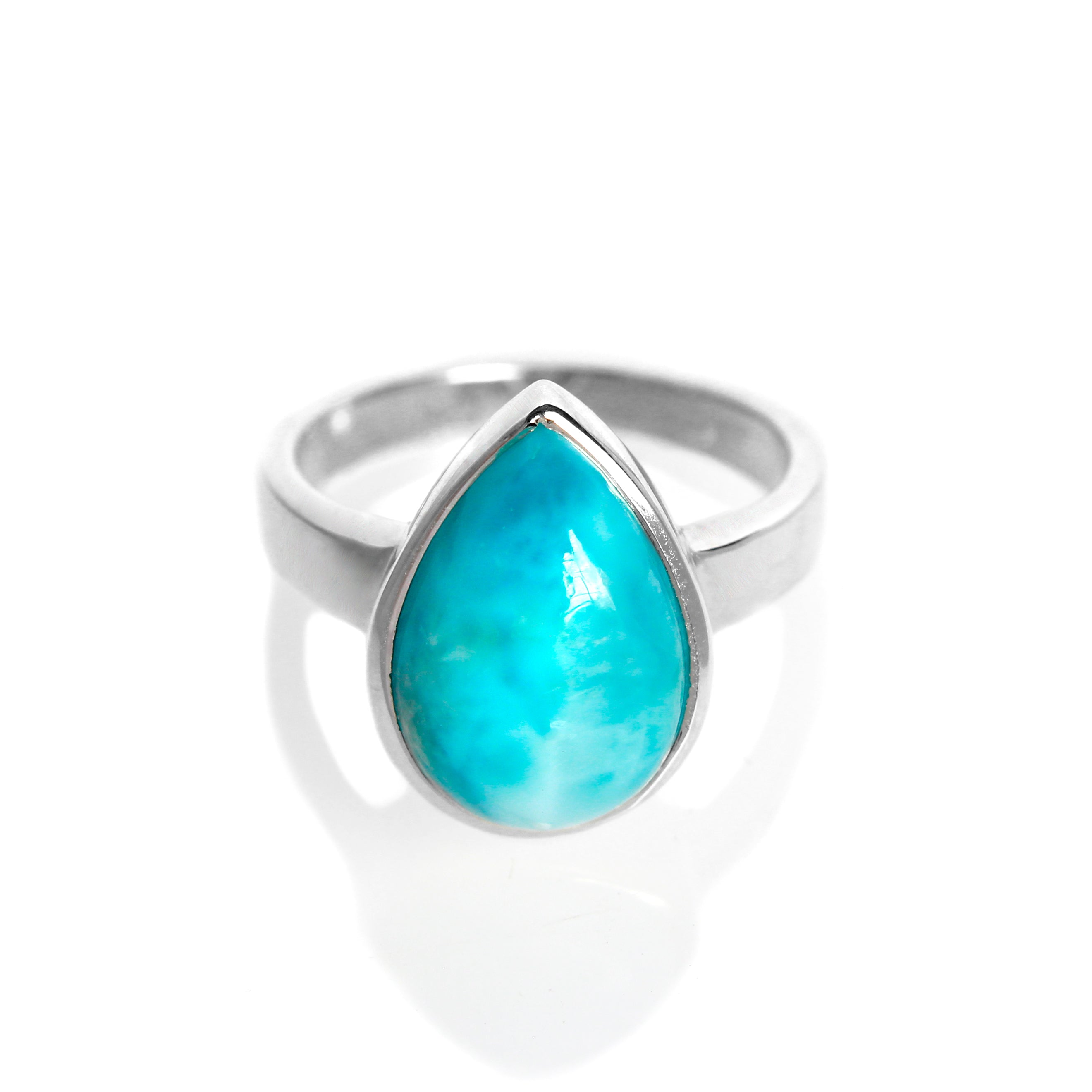 A statement sterling silver ring with a uniquely dappled Larimar centre stone, appropriate for everyday wear.