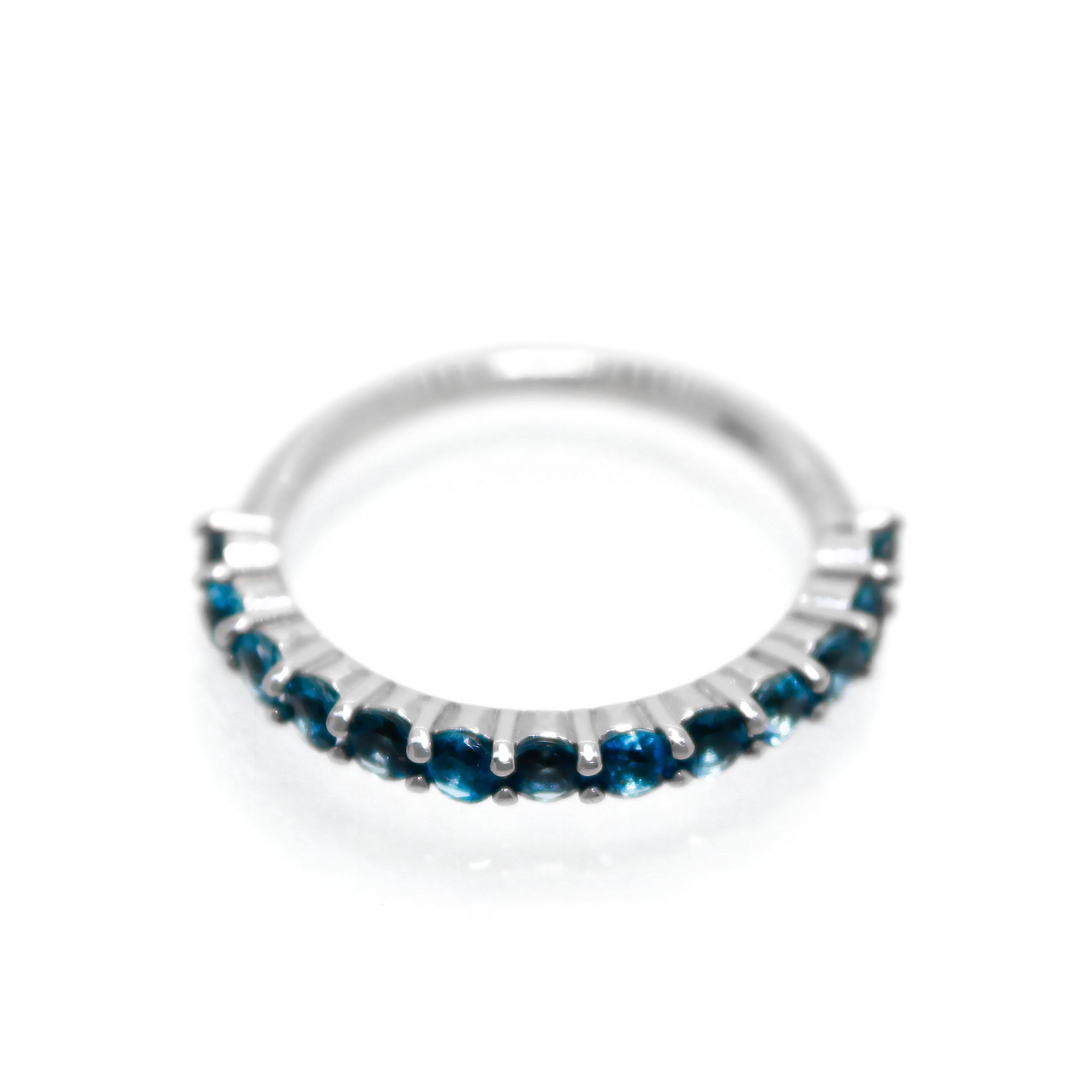 A uniquely-coloured London Blue topaz eternity ring in solid sterling silver, perfect for stacking or solo wear.