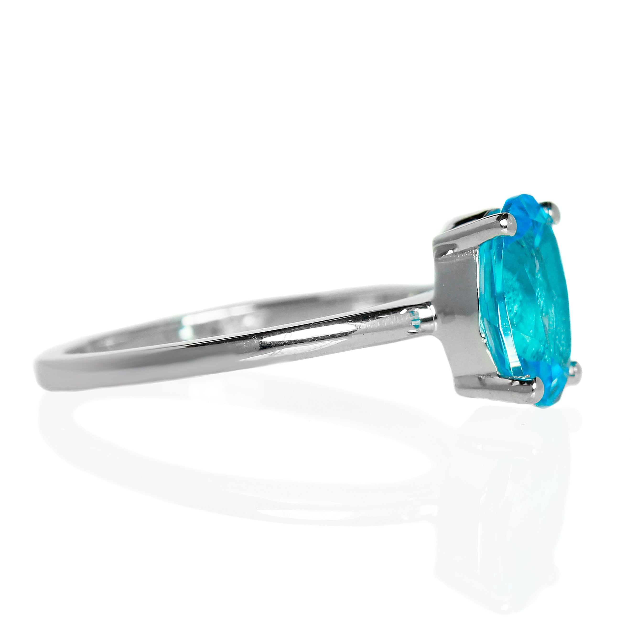 A staple silver solitaire ring, featuring a 9x7mm faceted blue topaz birthstone. Appropriate for every occasion.