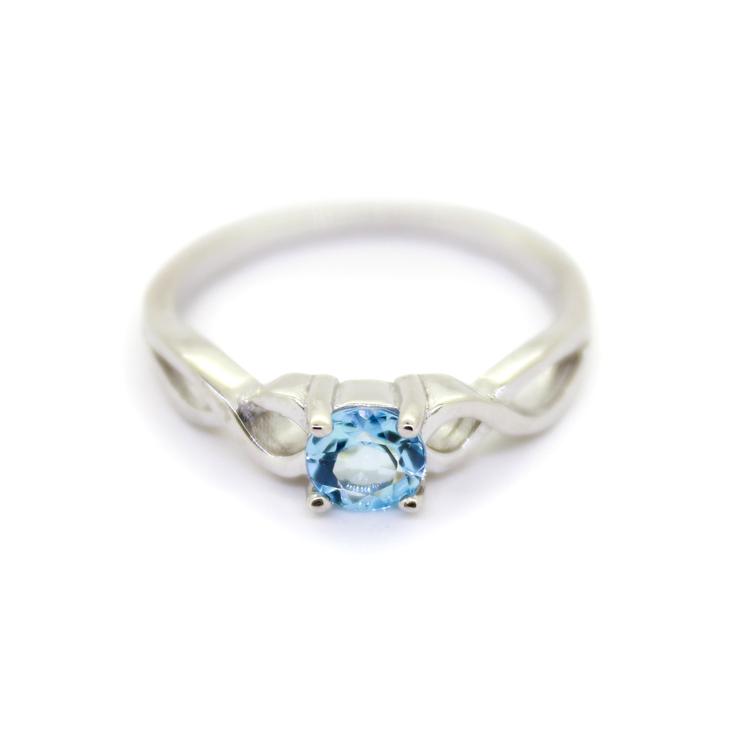 Infinity-Inspired 5mm Round Blue Topaz Ring in Silver