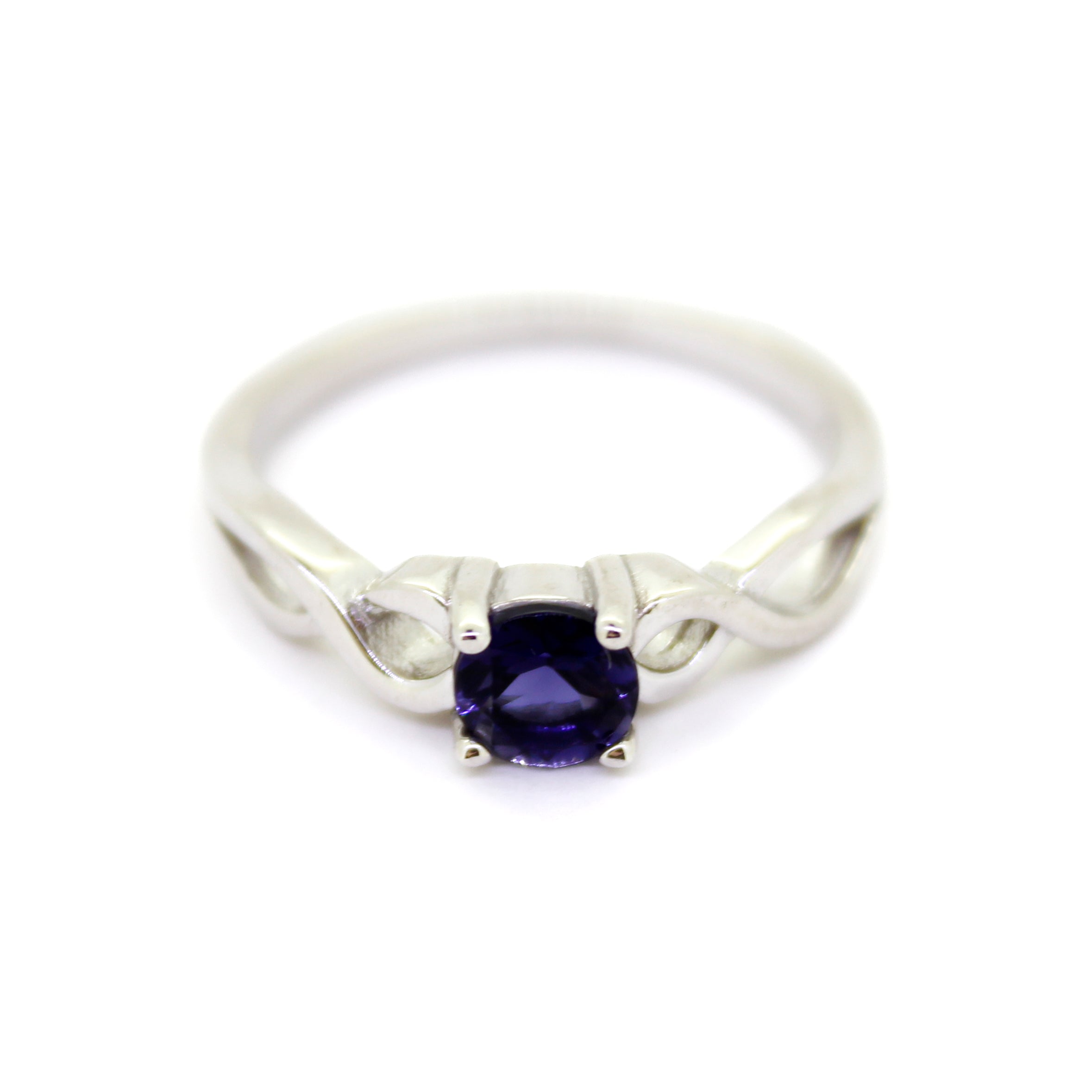 Infinity-Inspired 5mm Round Iolite Ring in Silver