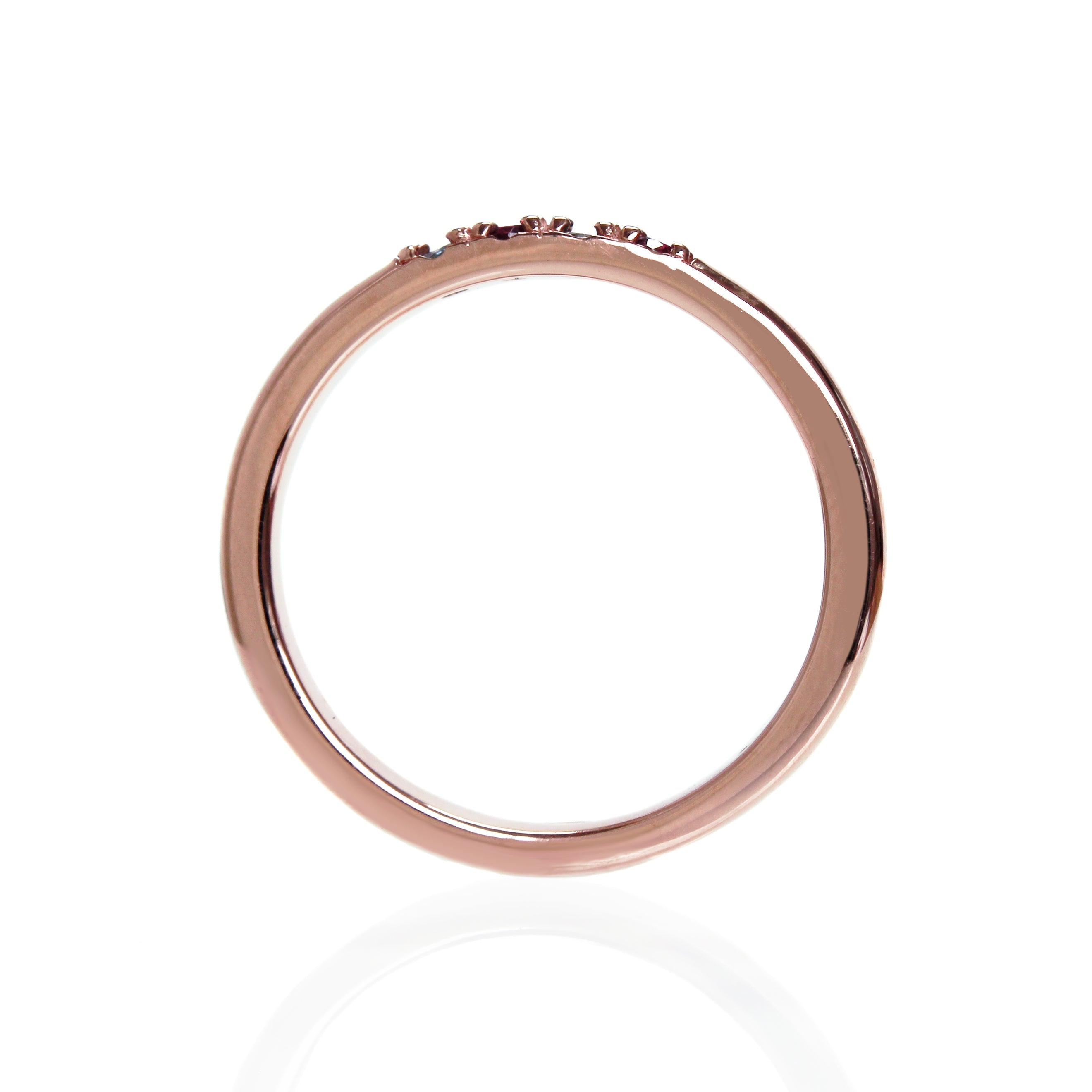 A minimalistic and sophisticated 9k rose gold ring with embedded tanzanite and moissanite detailing, perfect for stacking or solo wear.