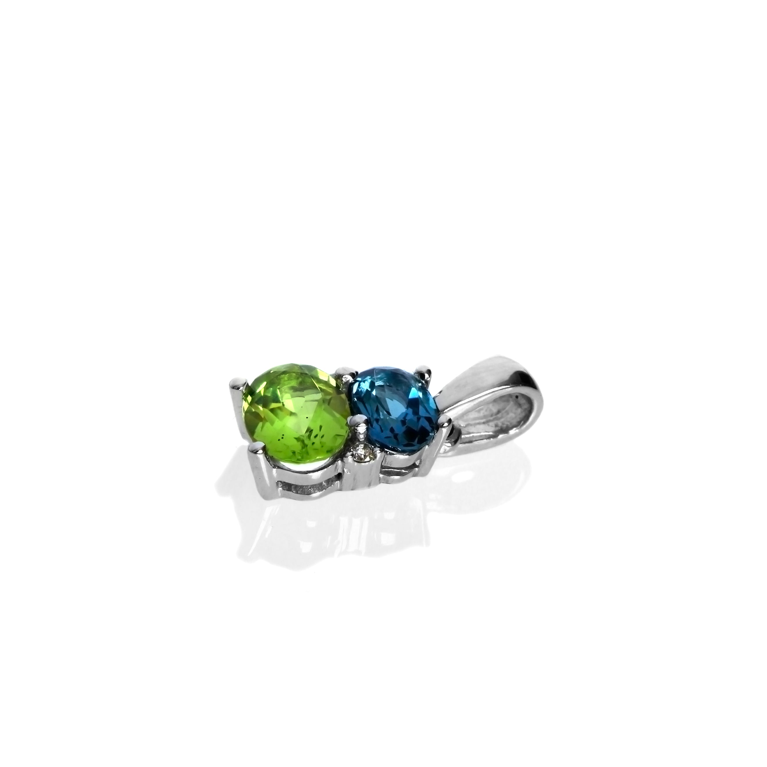 A classic two-tiered London Blue Topaz, peridot and diamond pendant, appropriate for every occasion. Chain not included.