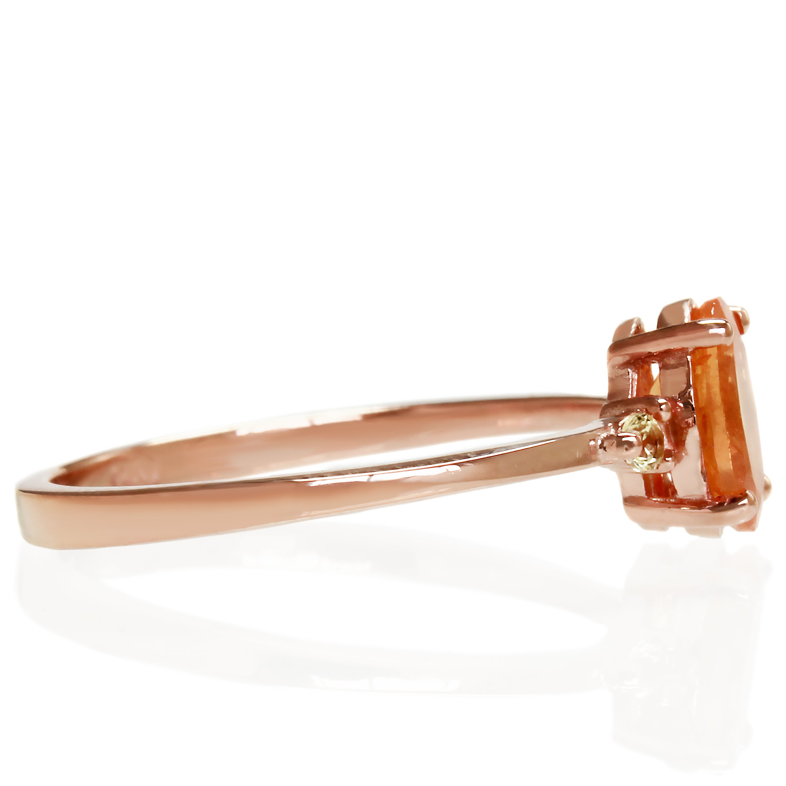 A dainty and elegant rose gold ring with a stunning trio of 7x5mm Mandarin and yellow sapphire.