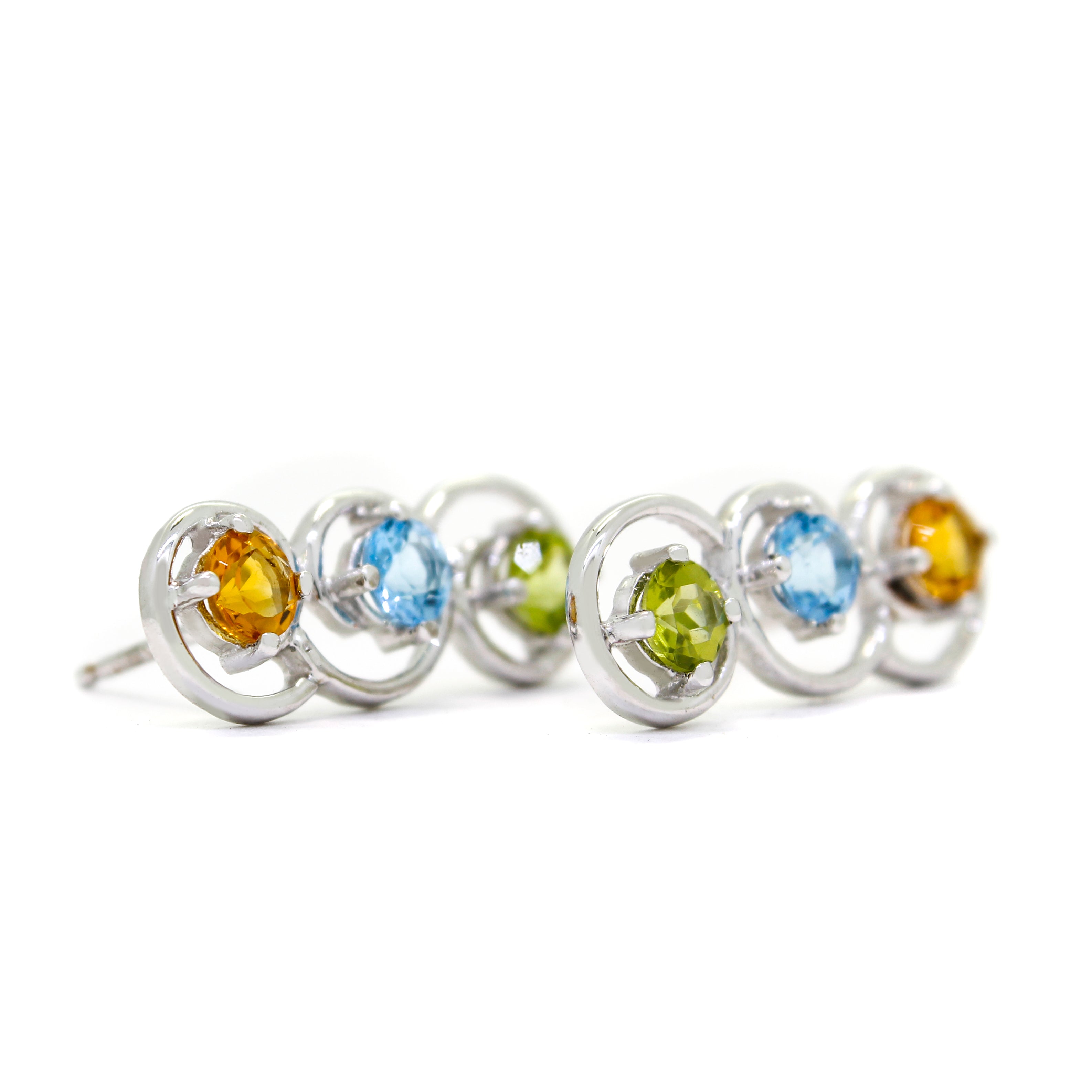 A playful multi-stone pair of earring studs, made up of citrine, blue topaz and peridot gemstones.