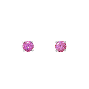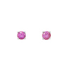 A delicate, staple pair of stunning 4mm round pink moissanite stud earrings. Dainty enough for everyday wear, with pink gemstones bright enough to add a pop to any outfit.