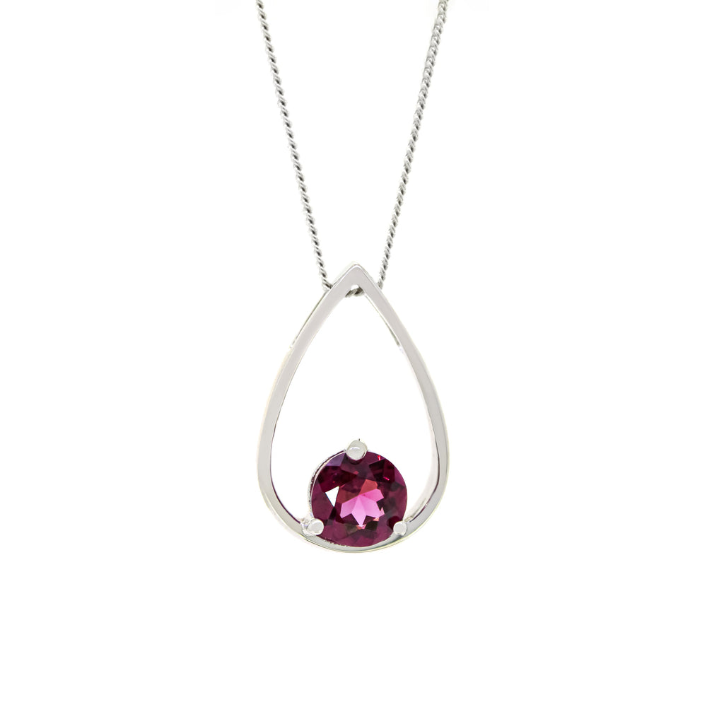 A sophisticated and minimalistic rhodalite pendant for any occasion. Chain not included.