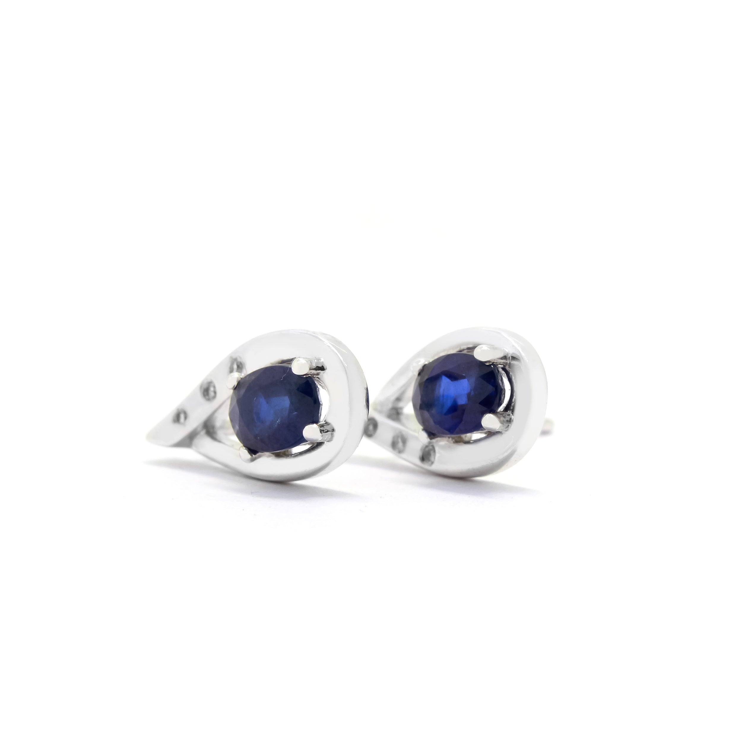 A unique pair of sapphire and diamond earring studs with 6x4mm stones.
