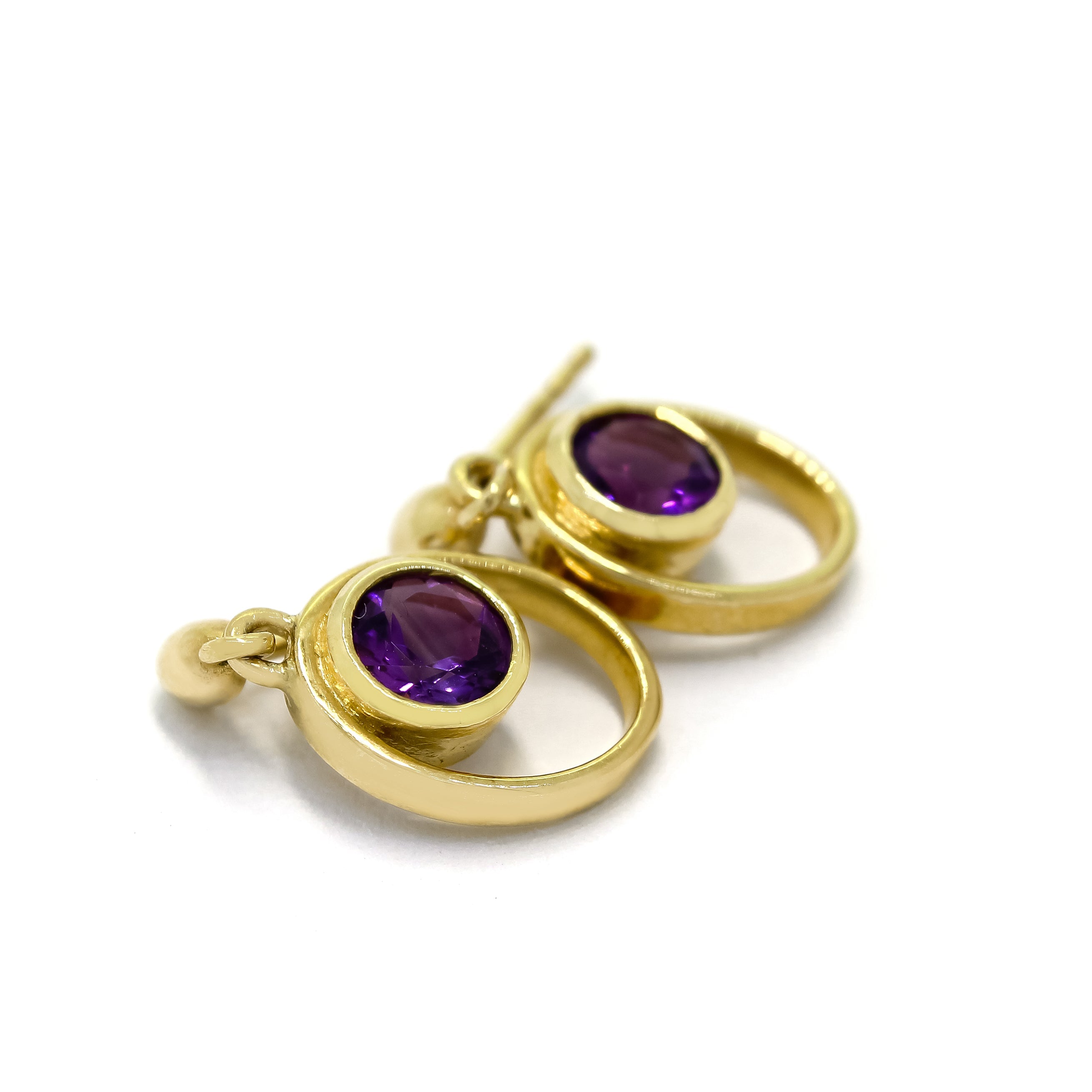 Feminine and bold yellow gold amethyst earrings for any occasion.