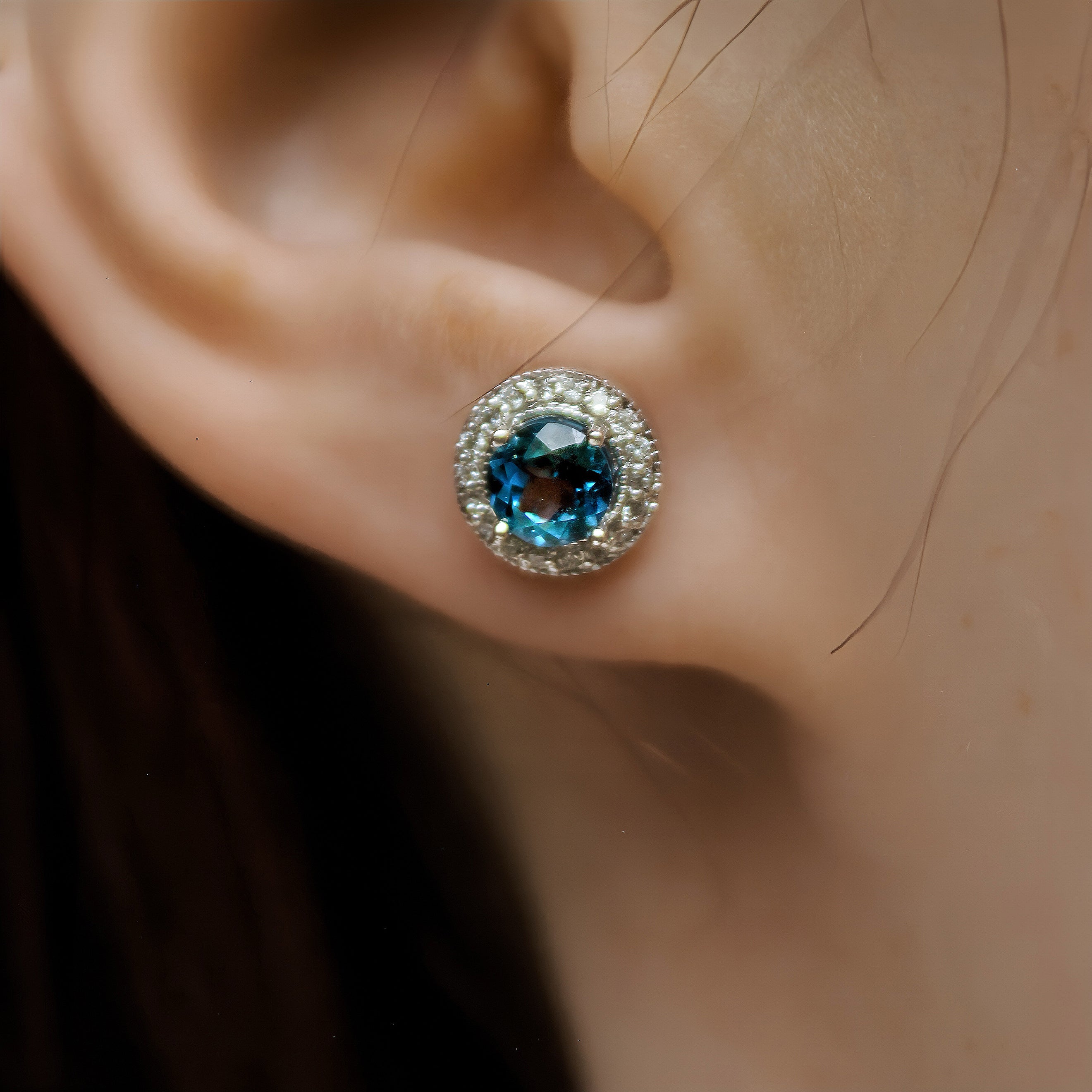 1.2ct Round London Blue Topaz & Diamond Earrings in 9k White Gold