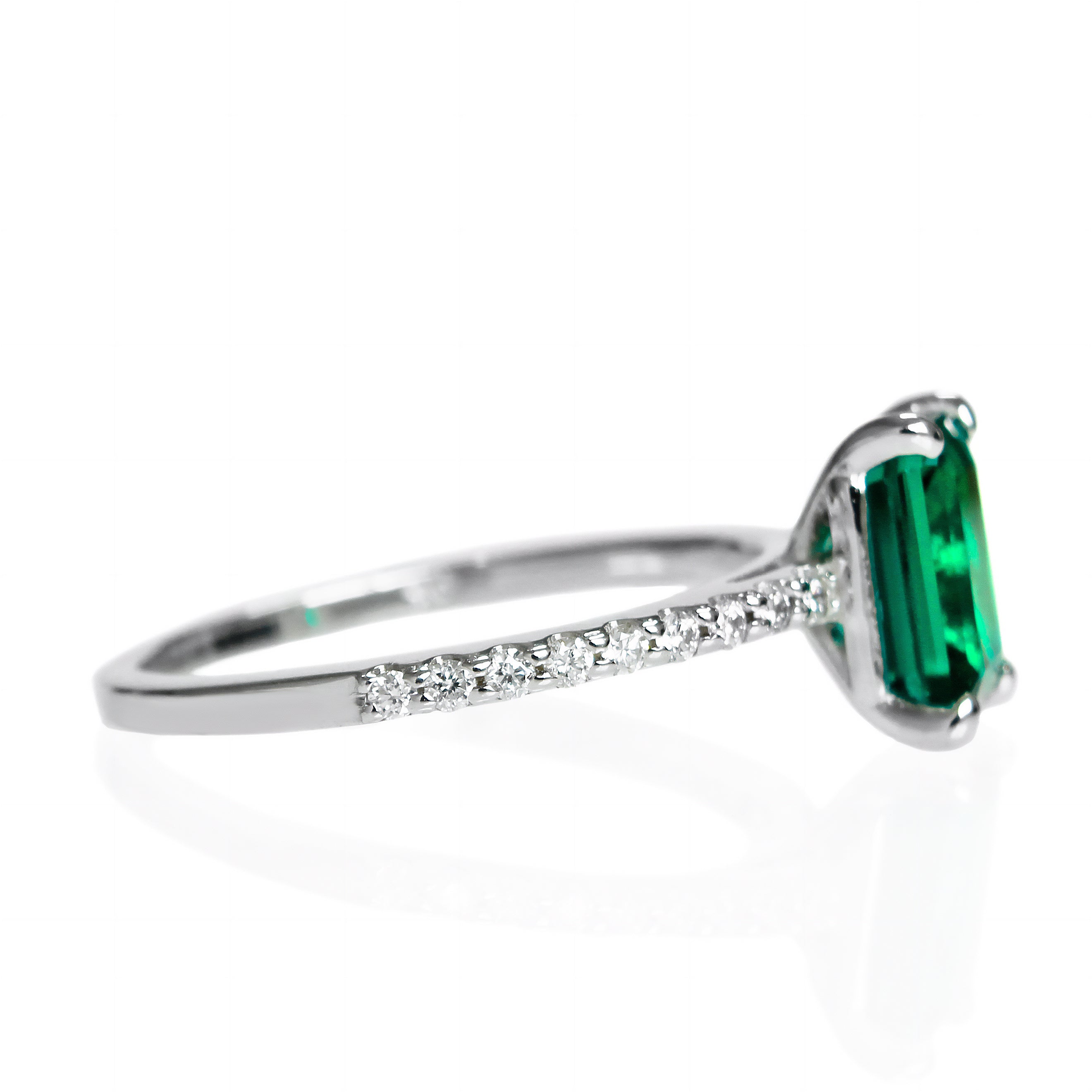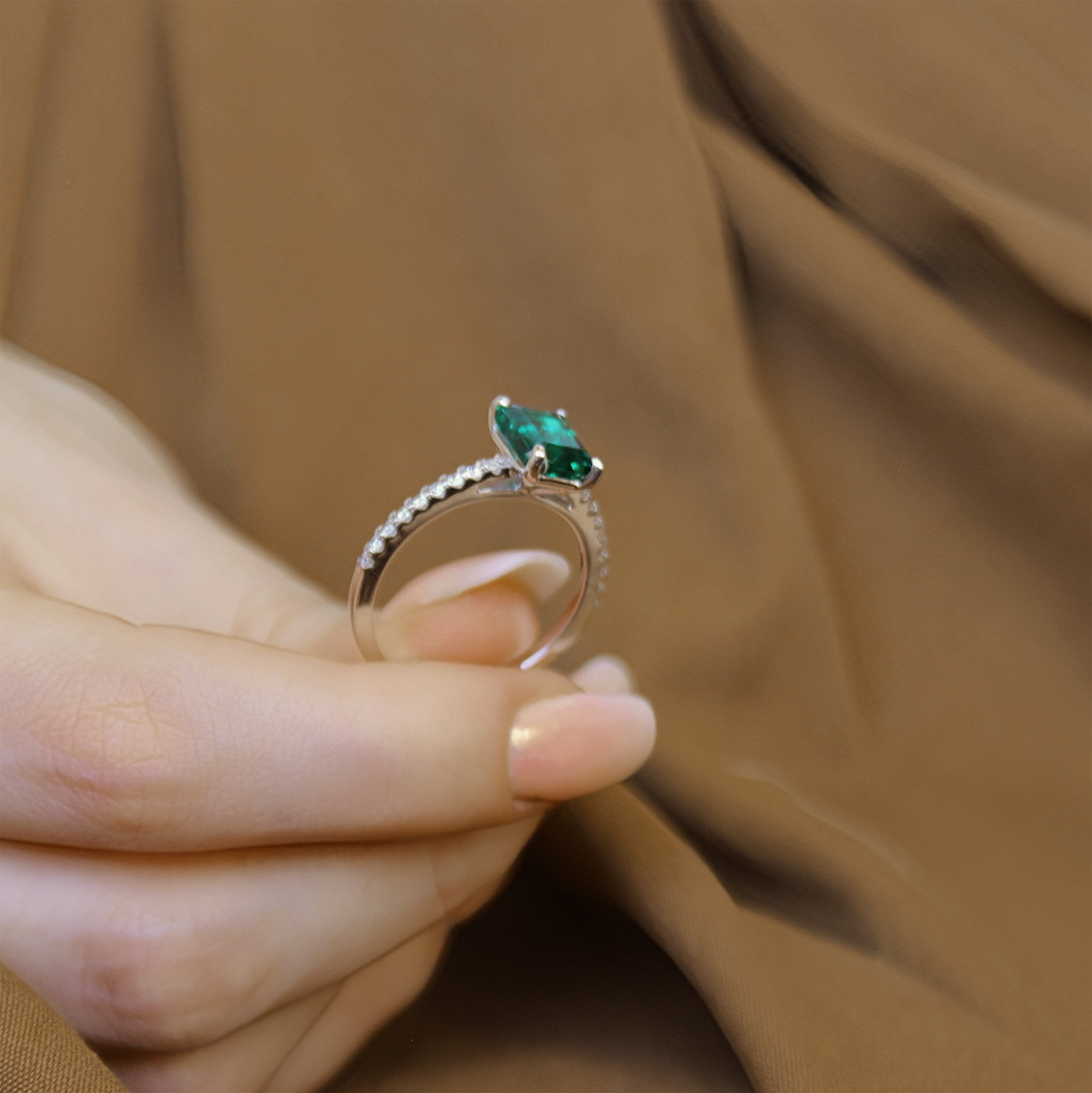 A delicate and sophisticated emerald birthstone ring - made up entirely of lab-grown stones, appropriate for any occasion.