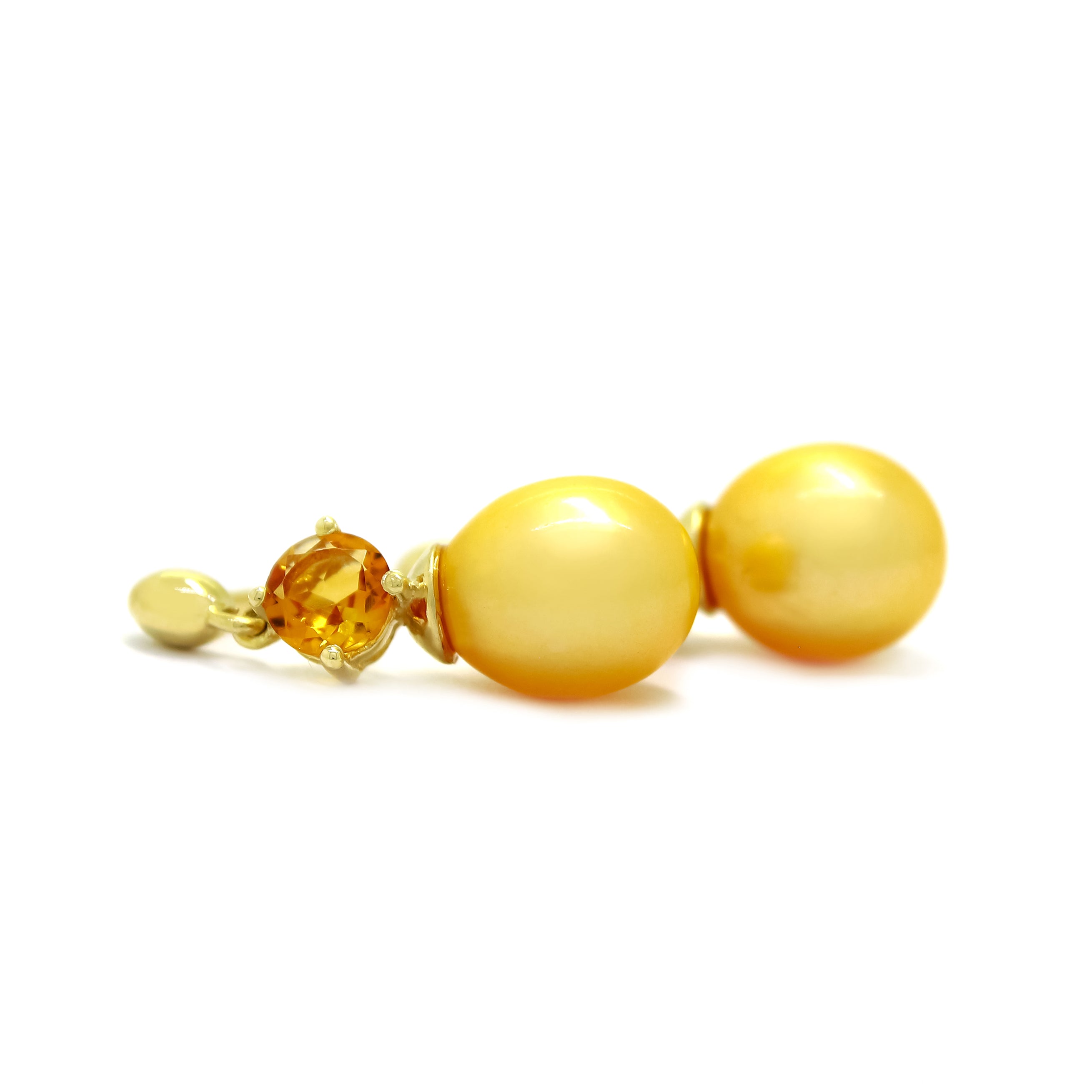 Impressive 10x8mm golden pearl drop earrings with 5mm citrine gemstones, for a boldly feminine look.