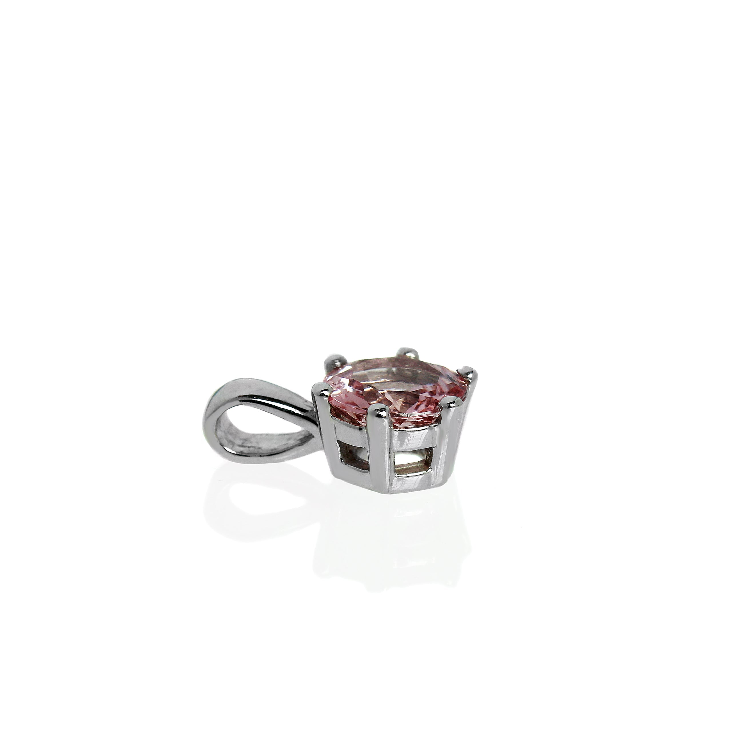 A dazzling 7mm round-cut pink morganite pendant framed by 6 sterling silver claws. Chain not included.