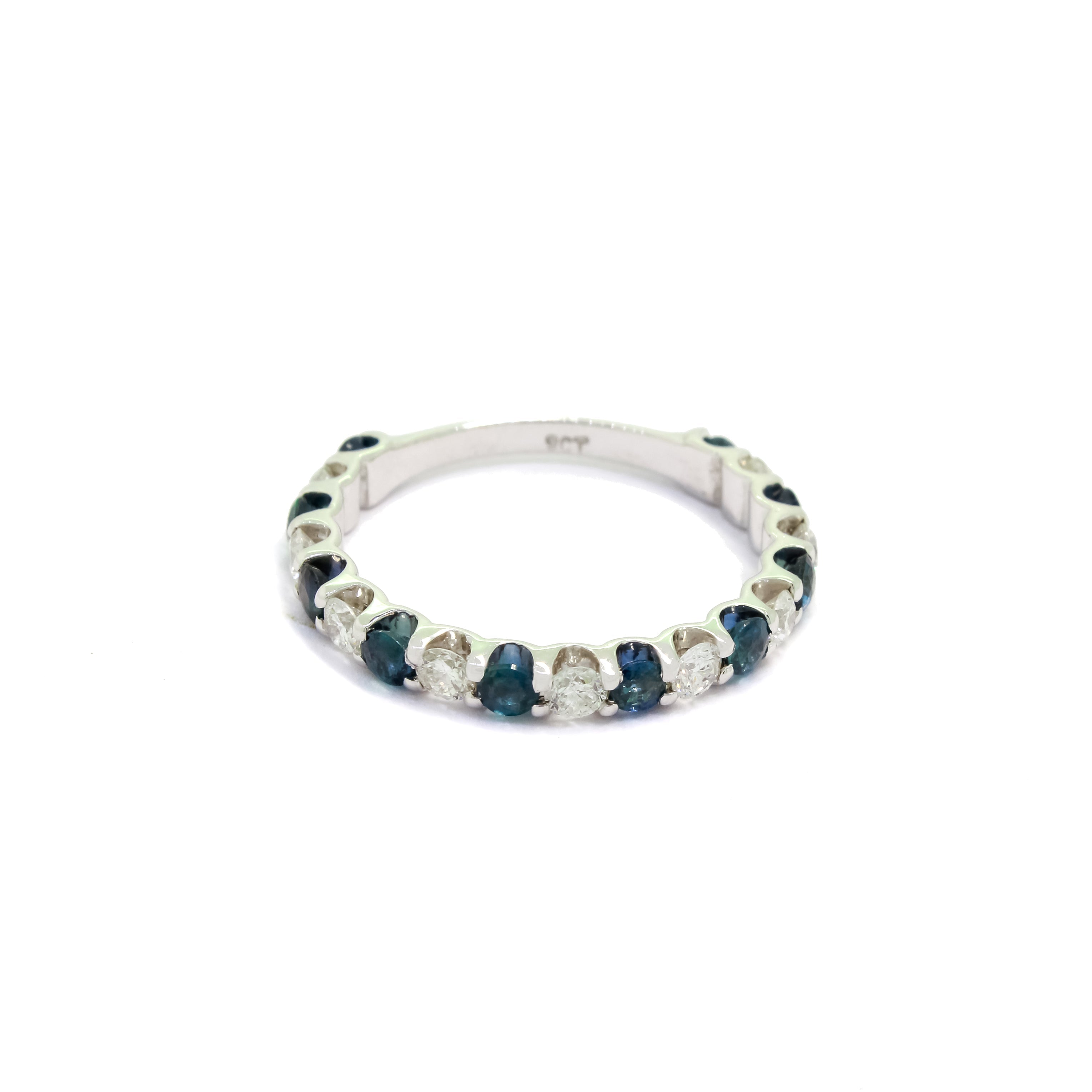A luxurious diamond and sapphire eternity ring, perfect for both stacking and solo wear.