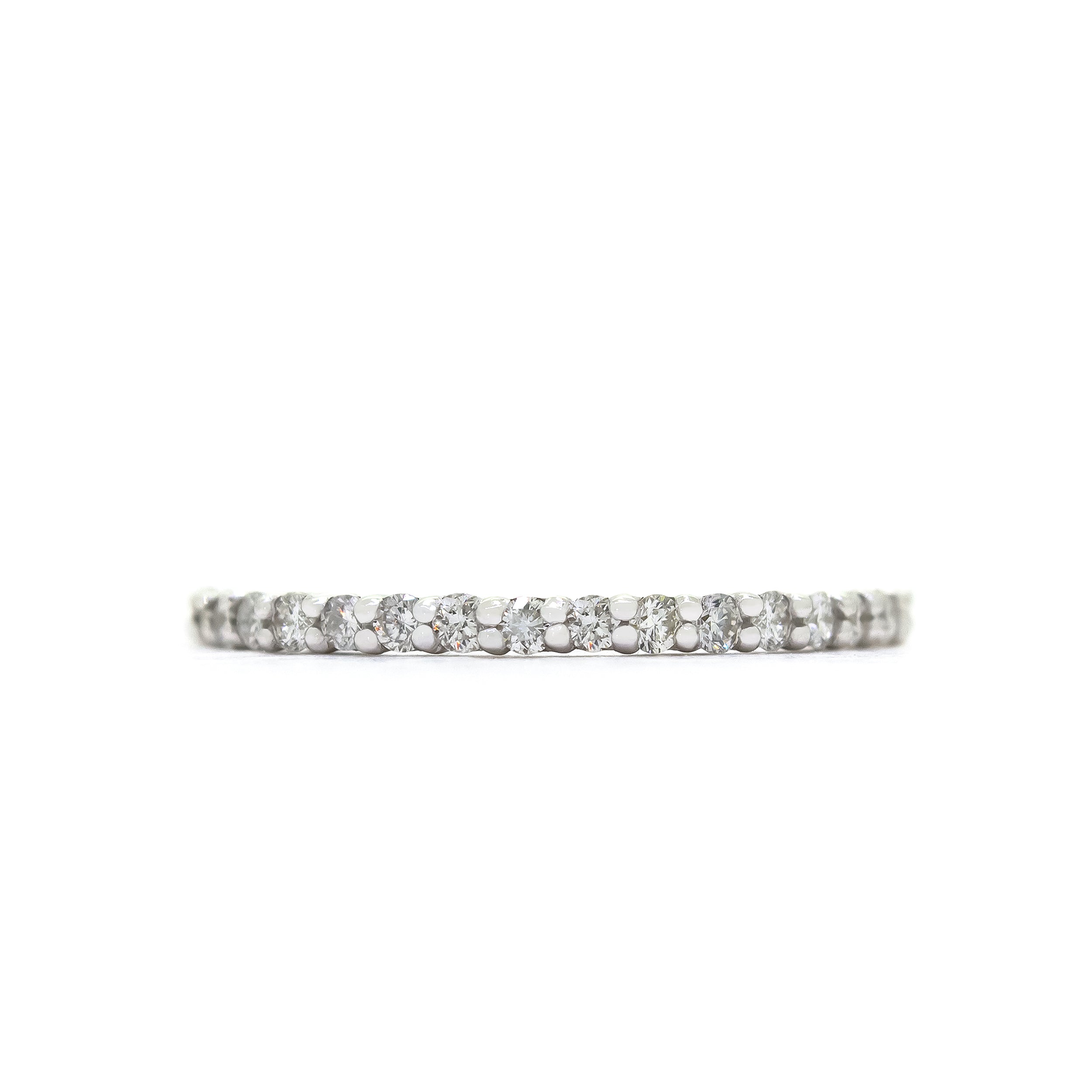 A dazzling, delicate diamond eternity ring, suitable as a wedding band or for stacking.