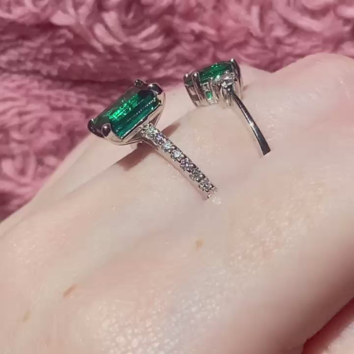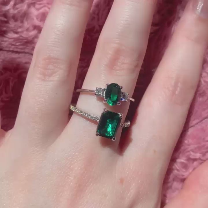 A delicate and sophisticated emerald birthstone ring - made up entirely of lab-grown stones, appropriate for any occasion.