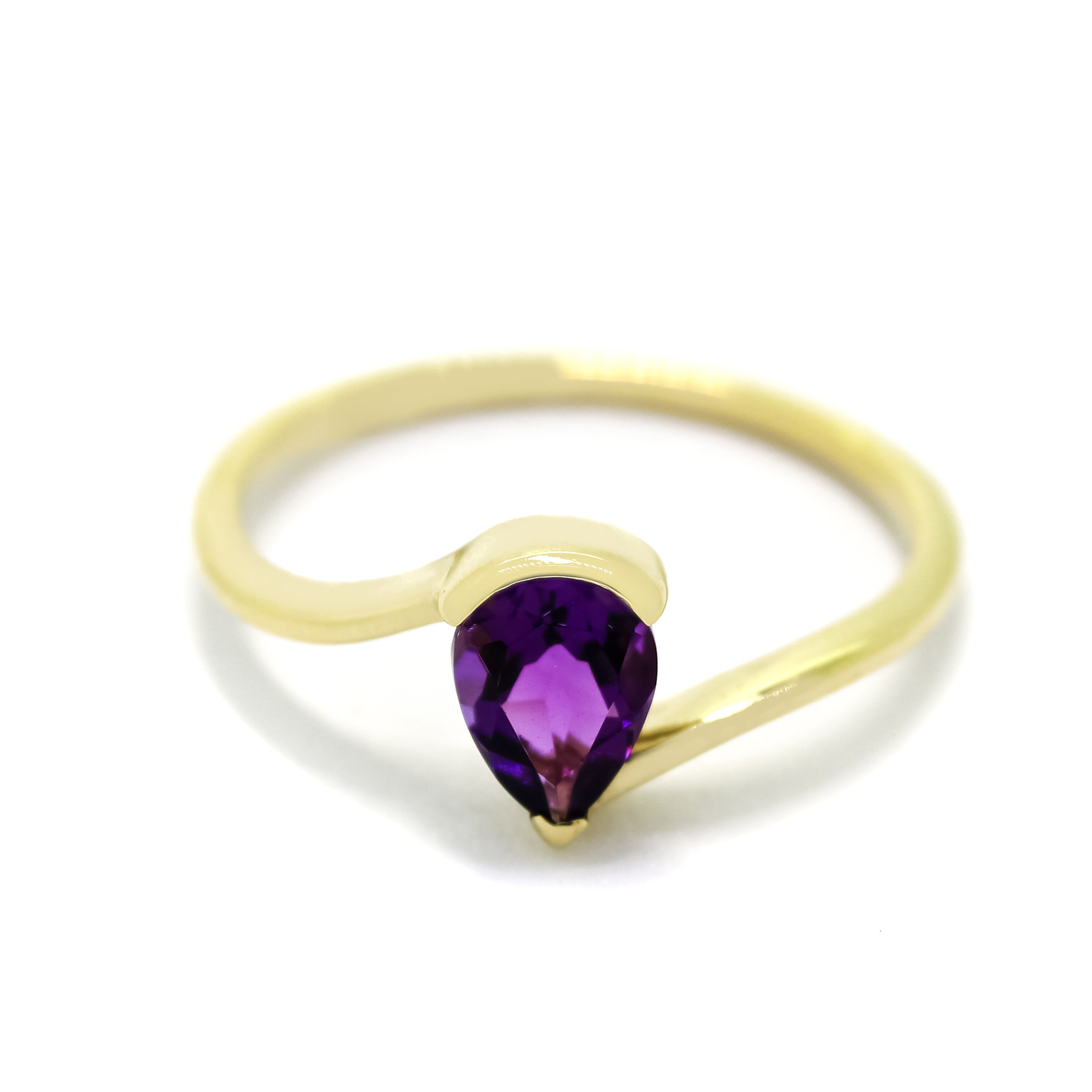 0.65ct Pear Amethyst Curved Ring in 9k Yellow Gold
