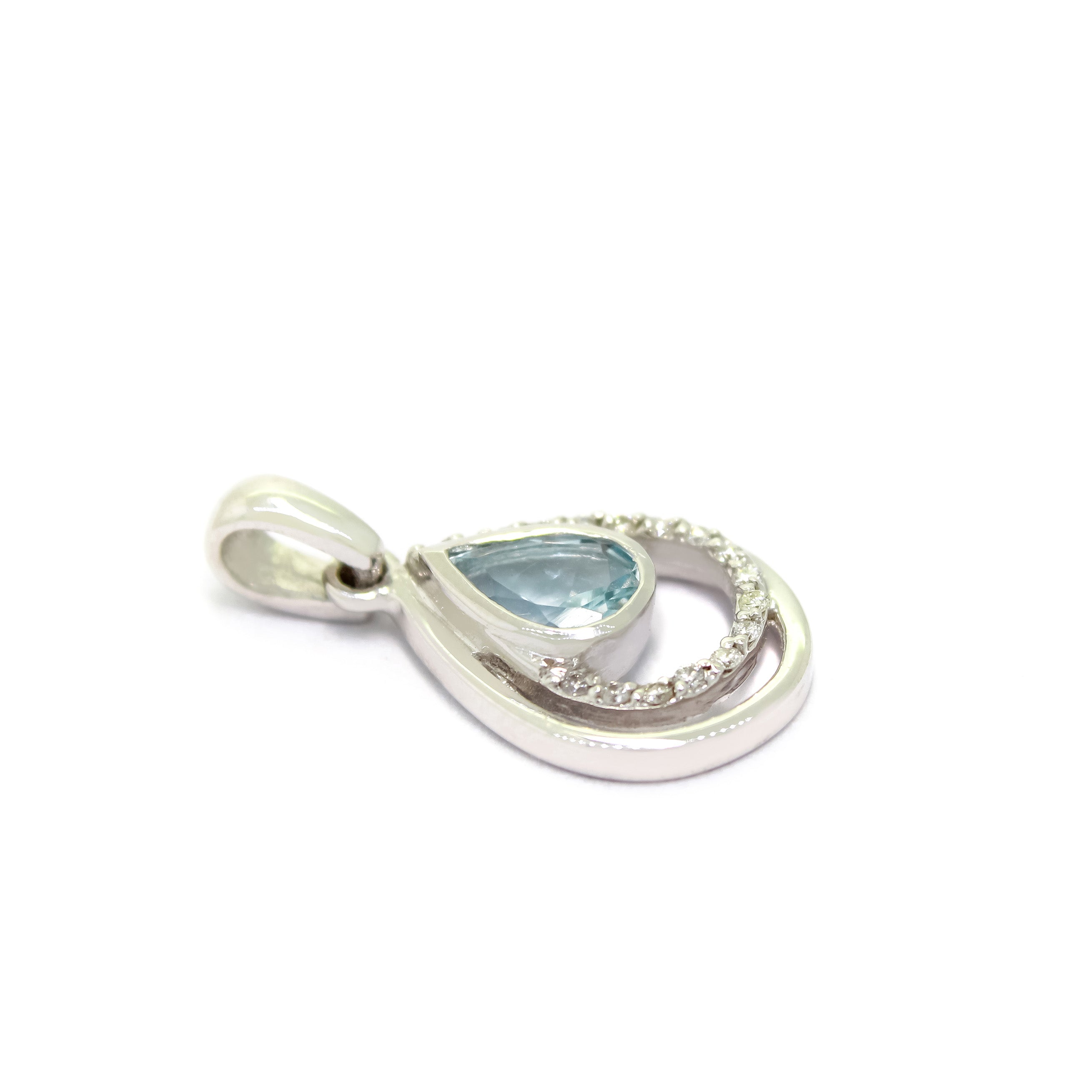 A glamorous and elegant aquamarine and diamond pendant in solid 9k white gold. Chain not included.