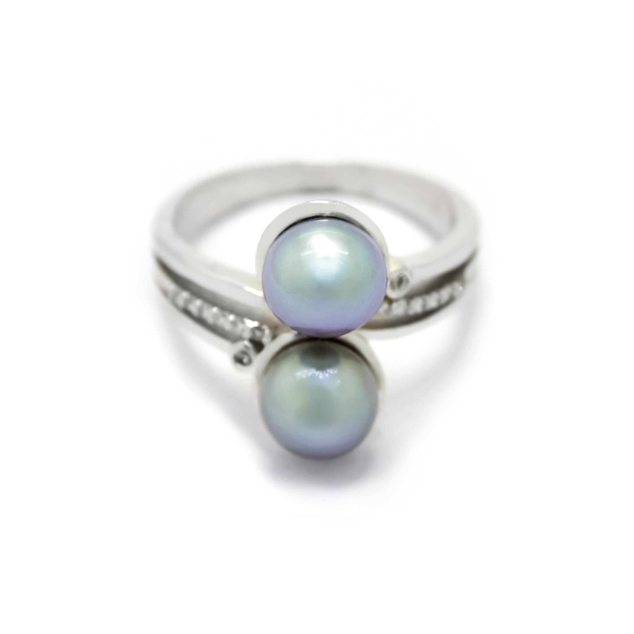 A uniquely detailed duo pearl ring, for a bold and dazzling look.