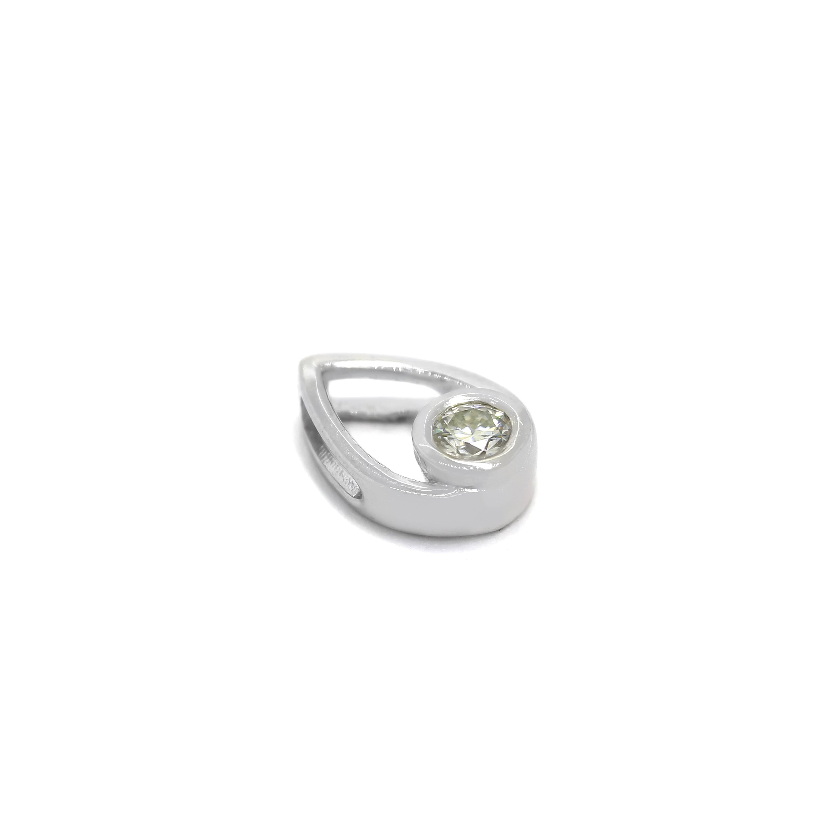 A dainty, elegant moissanite pendant encased in silver. Chain not included.