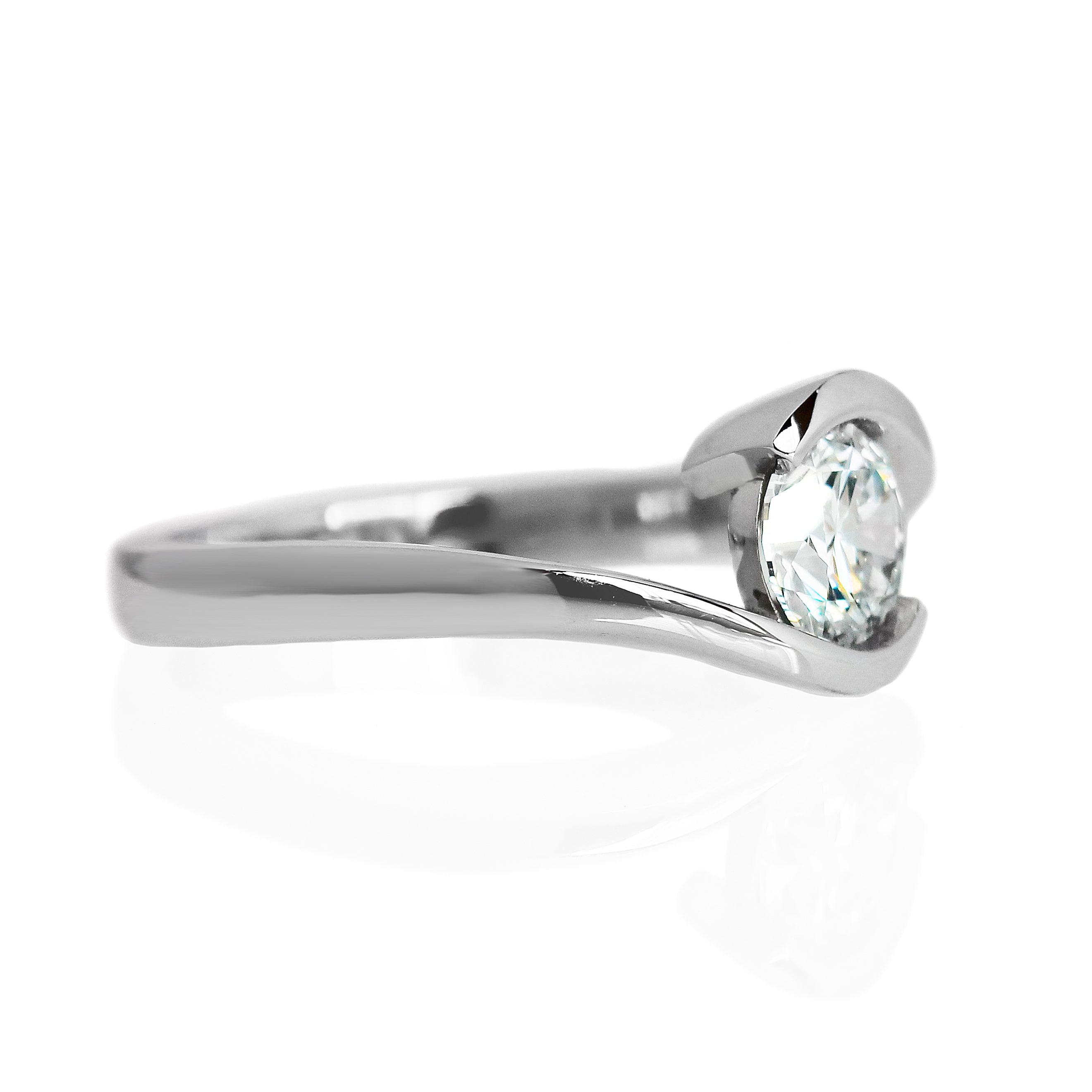 A classically gorgeous solitaire-style engagement ring, the Mary features a brilliant 0.70ct curated diamond centre stone and a band expertly designed in solid 14 karat white gold. The dazzling round-cut diamond comes certified and graded by the AGA-accredited Gem Lab as D/VS1, and a full valuation of the piece is included with the purchase.