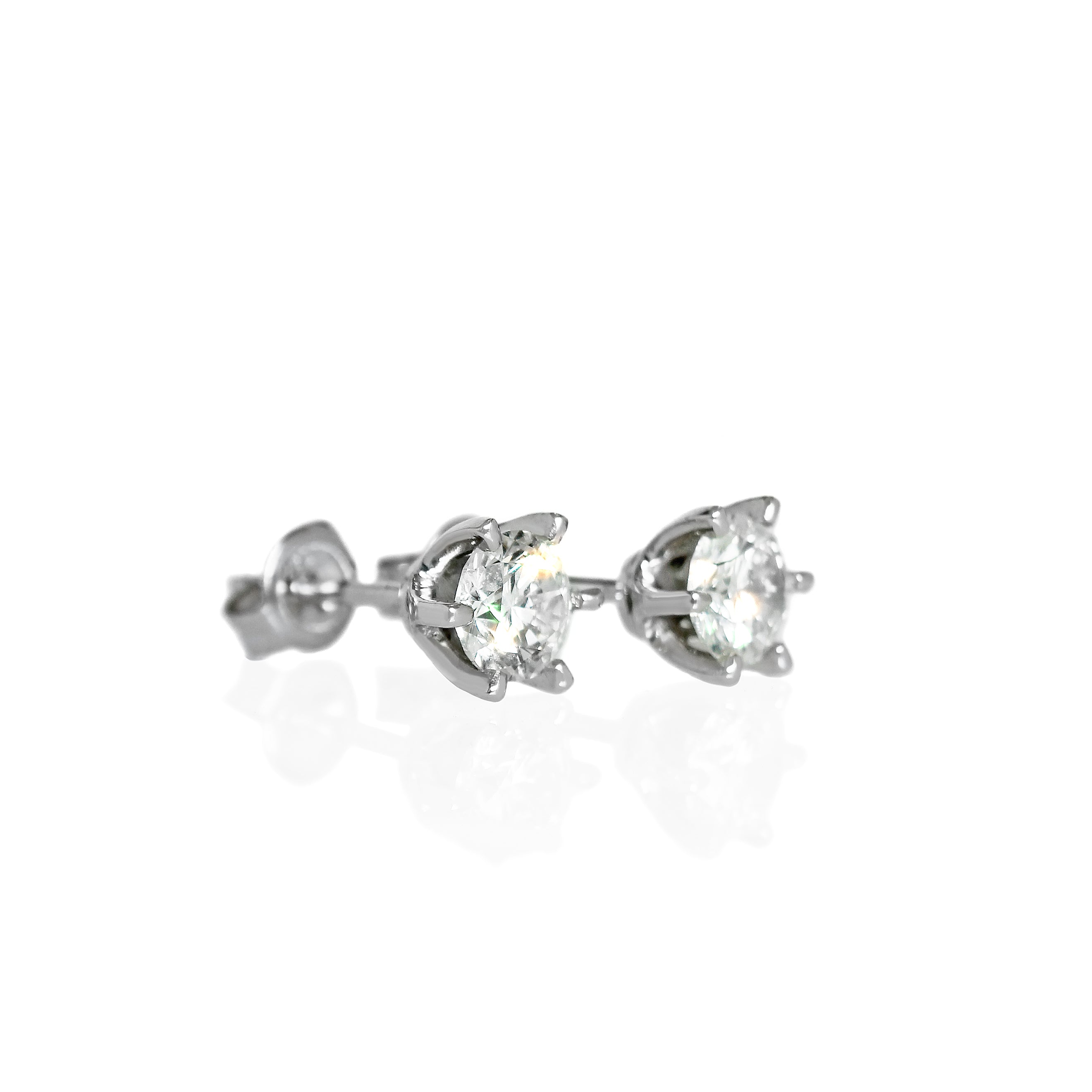 A classically feminine design, the Nefertiabet earrings feature two sparkling brilliant-cut 0.50ct curated diamond jewels, each held in place by six delicate solid 14k white gold claws. The dazzling round-cut diamonds each come certified and graded by the AGA-accredited Gem Lab as D/VS2, and a full valuation of the pair is included with the purchase.