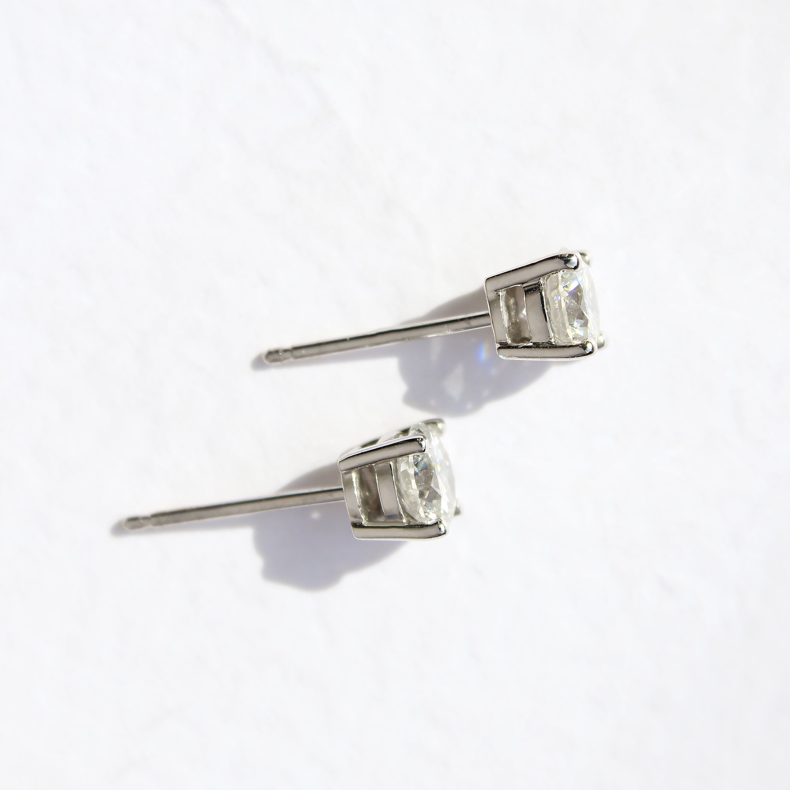 A classic staple style for any jewellery box, the Caliana earring studs feature two stunning half-pointer cultivated diamonds held in place by 4 delicate white gold claws. The dazzling round-cut diamonds come certified and graded by the AGA-accredited Gem Lab as F/G VS/SI, and a full valuation of the pair is included with the purchase.