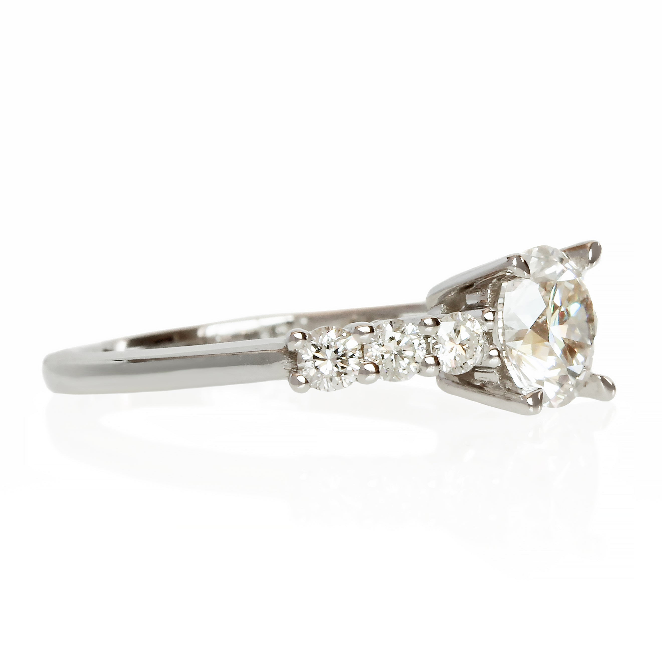 A timeless and elegant lab diamond engagement ring, featuring a stunning centre stone and delicate round brilliant-cut accents.