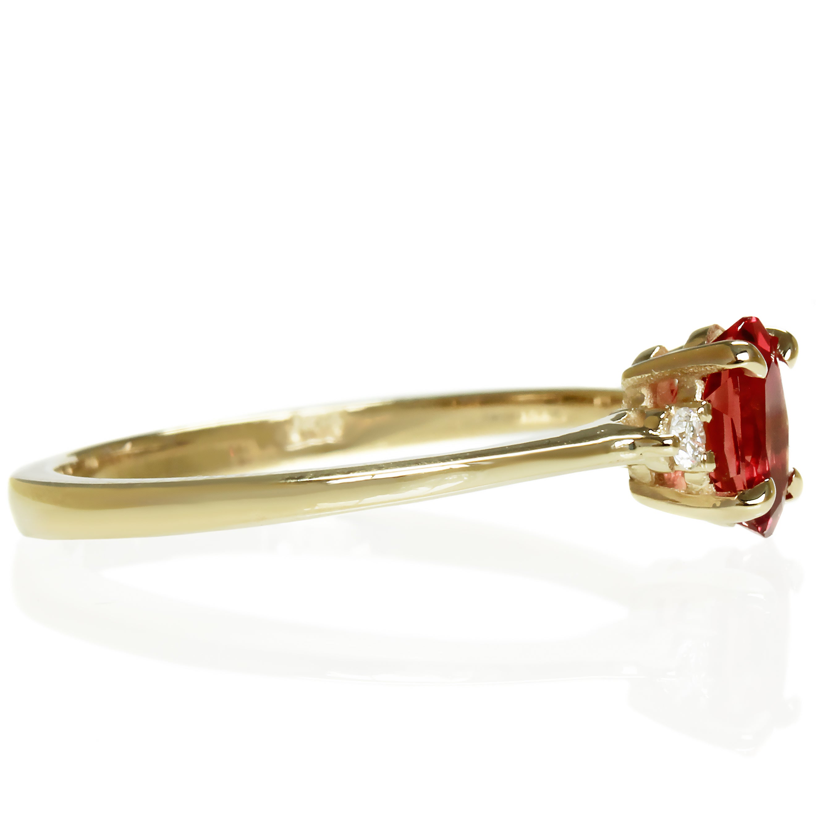 A dainty and feminine red andesine and diamond trio ring, perfect for any occasion.