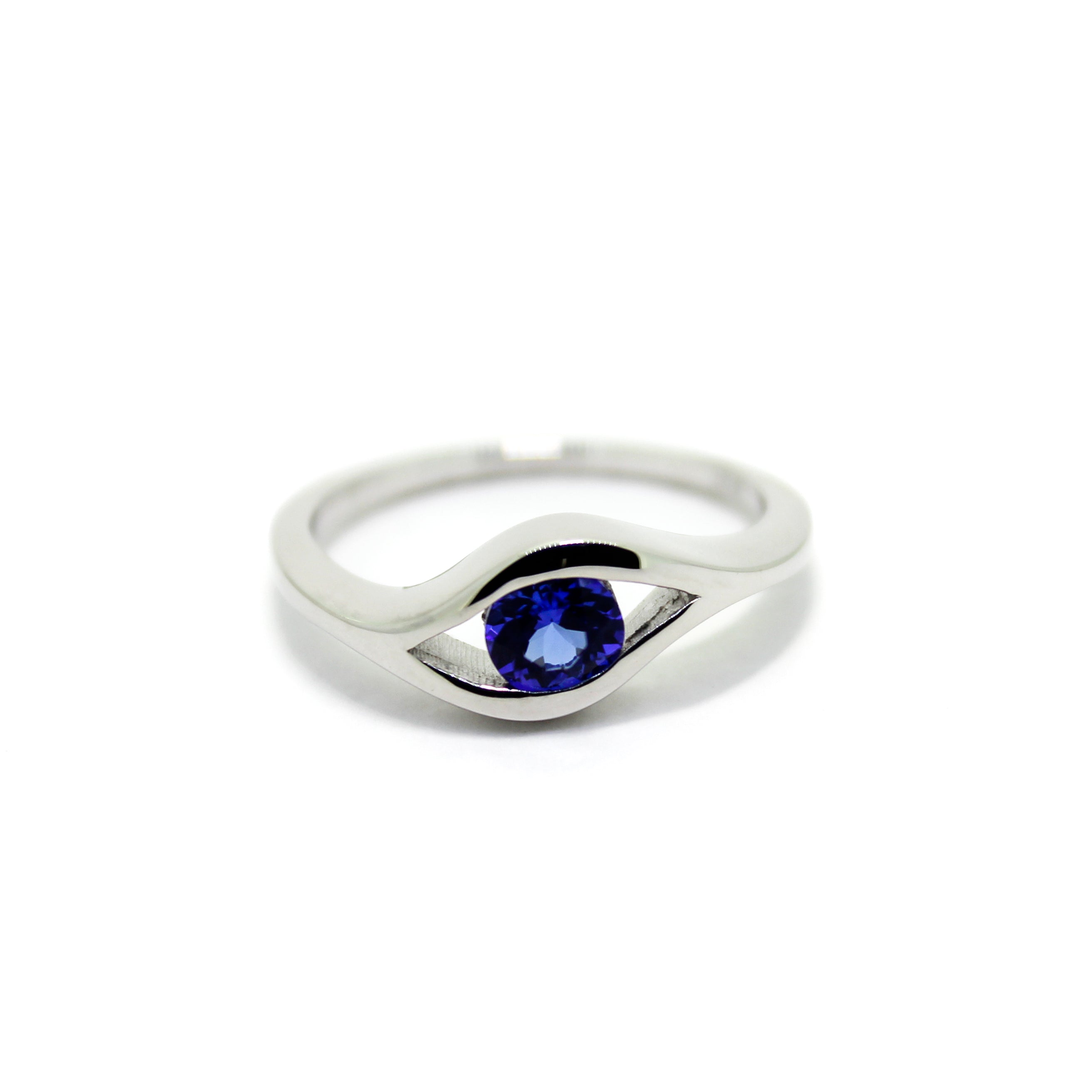 0.50ct Round Shaped Tanzanite Ring in 9K White Gold