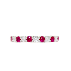 A luxurious diamond and ruby eternity ring, perfect for both stacking and solo wear.