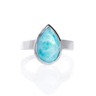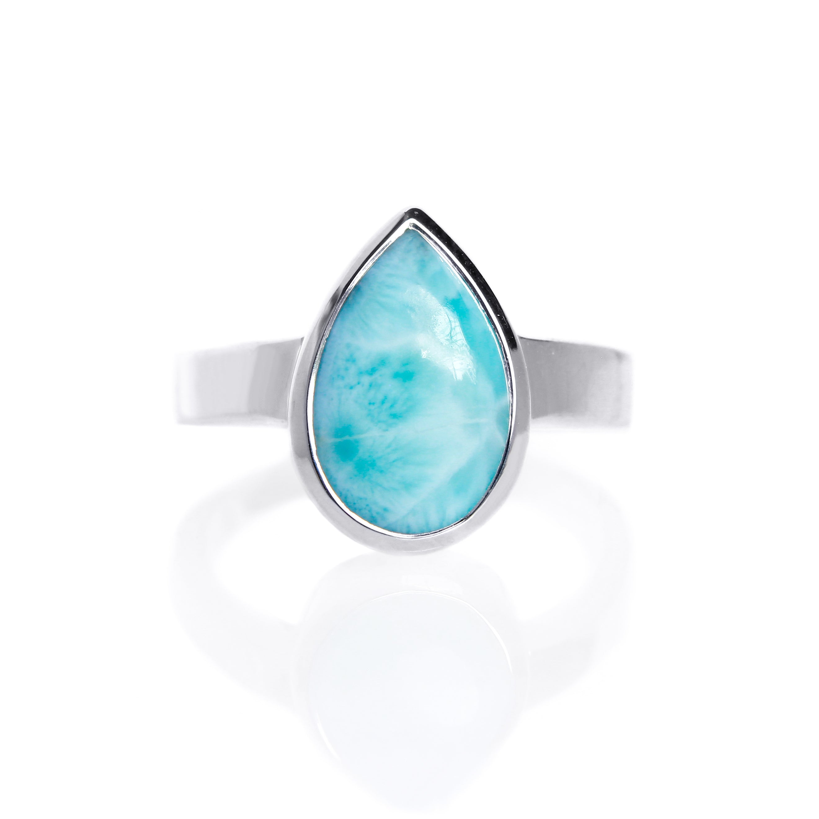 A statement sterling silver ring with a uniquely dappled Larimar centre stone, appropriate for everyday wear.