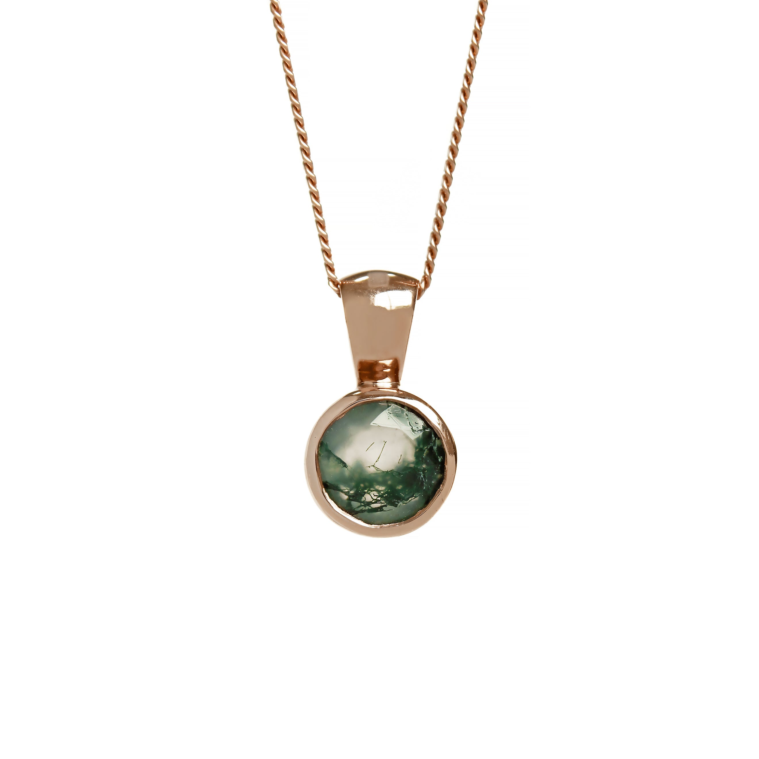7mm Round Moss Agate Bezel-set Pendant in 9k Rose Gold