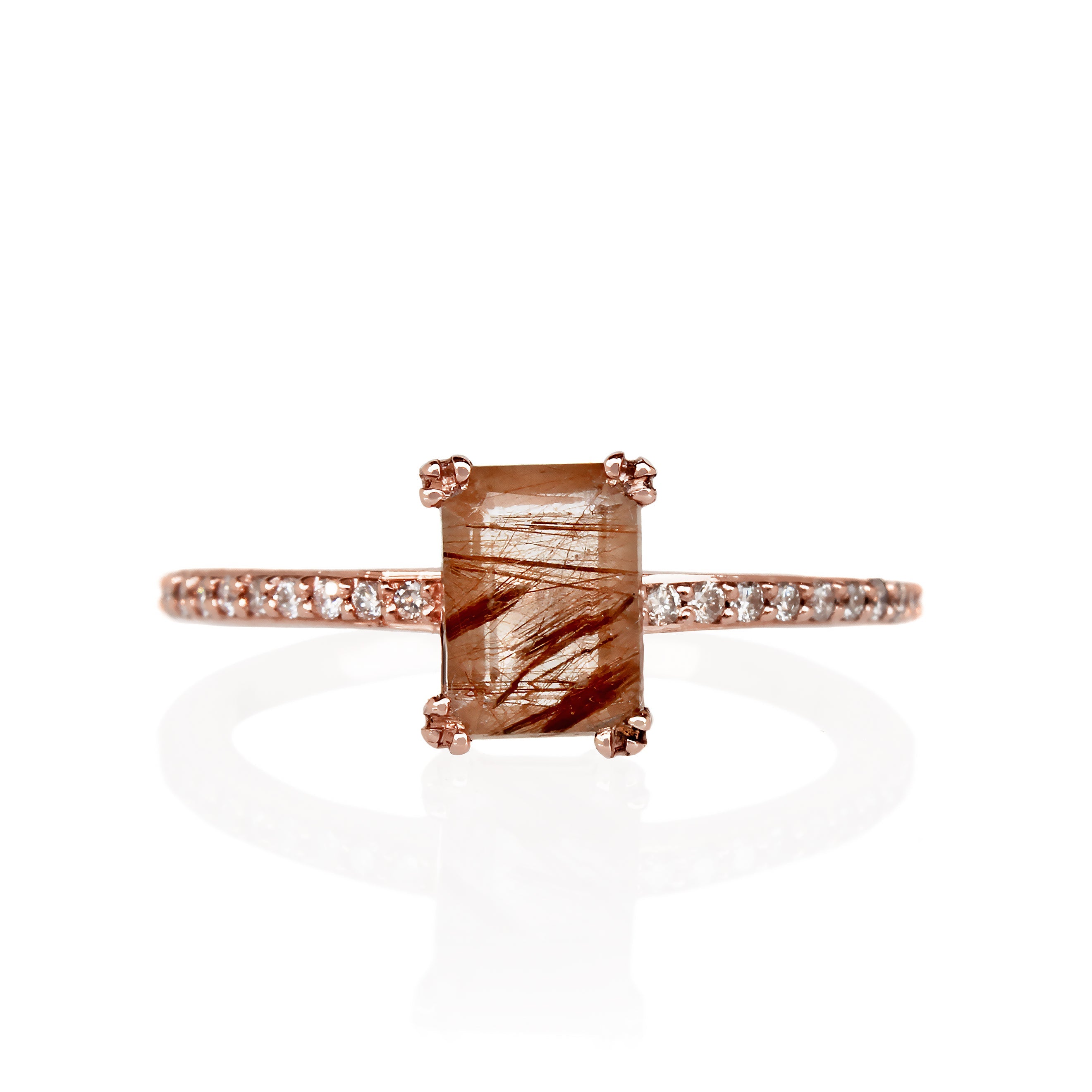 7x5mm Rectangular Copper Rutile and Diamond Pavé Ring in 9k Rose