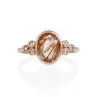9x7mm Oval Copper Rutile and Diamond Bezel Ring in 9k Rose Gold